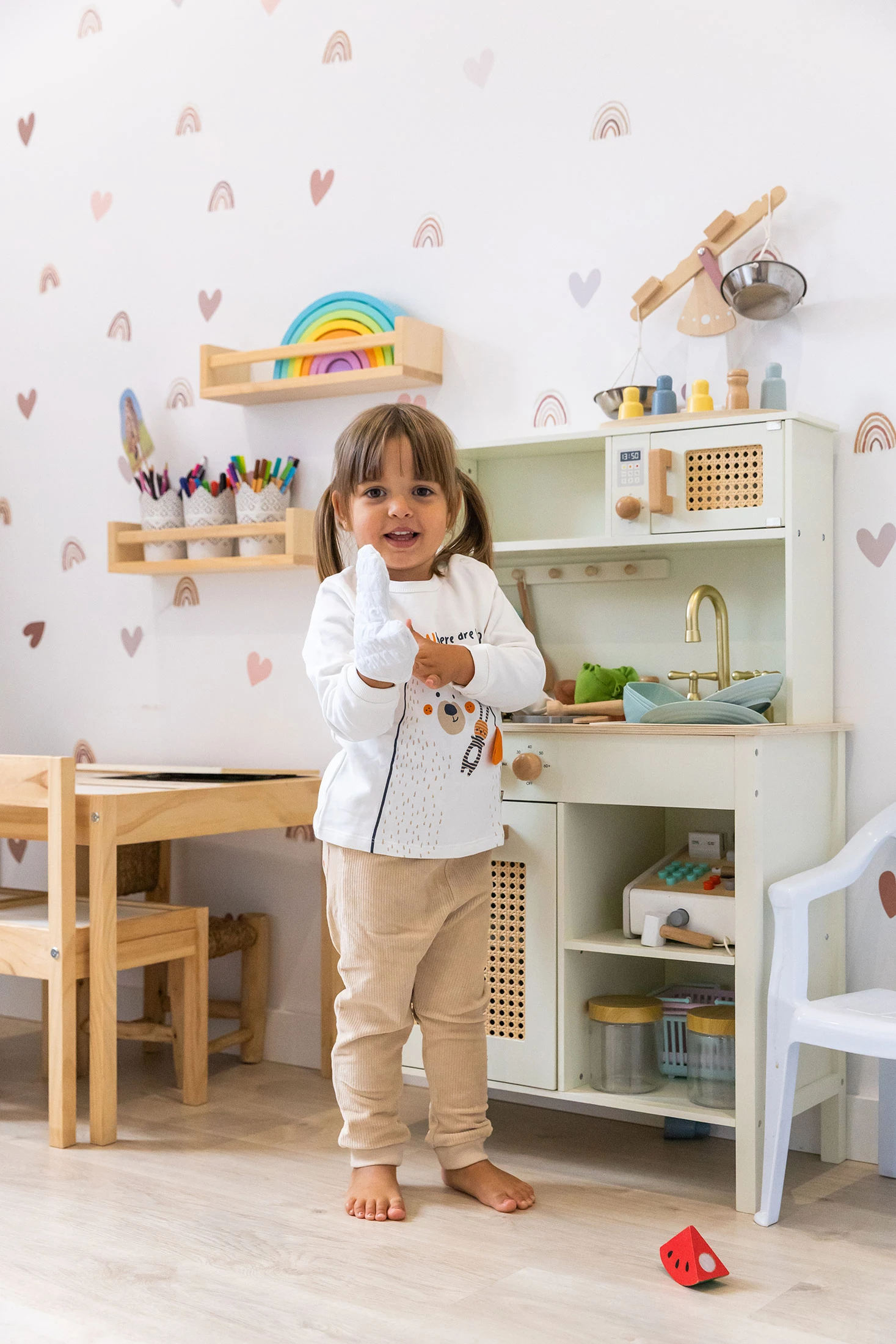 Knitted set for baby, featuring a charming white bear design, is ideal for cold days. Made from soft and warm materials, it guarantees comfort and protection for your baby's delicate skin. Available in sizes from 1 month to 2 years, this set is perfect for pairing with knitted hats and booties, achieving a tender and cosy look. It offers ease of movement and warmth, becoming an essential basic for your little one's winter wardrobe.