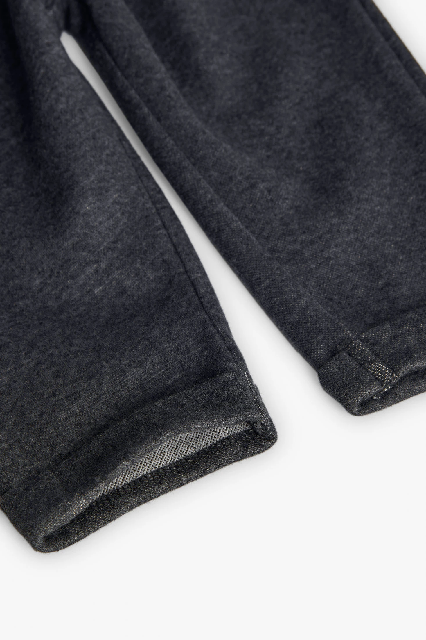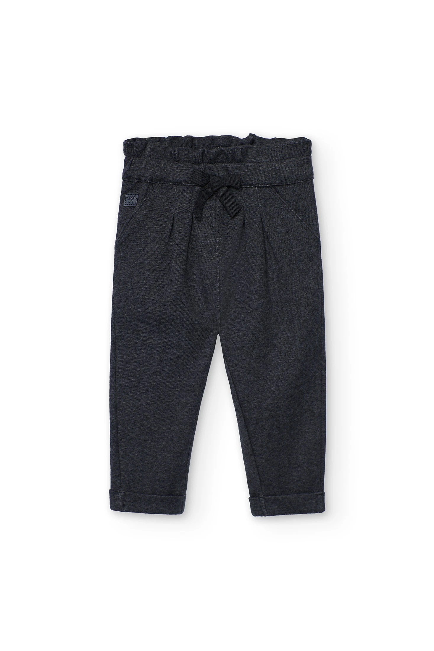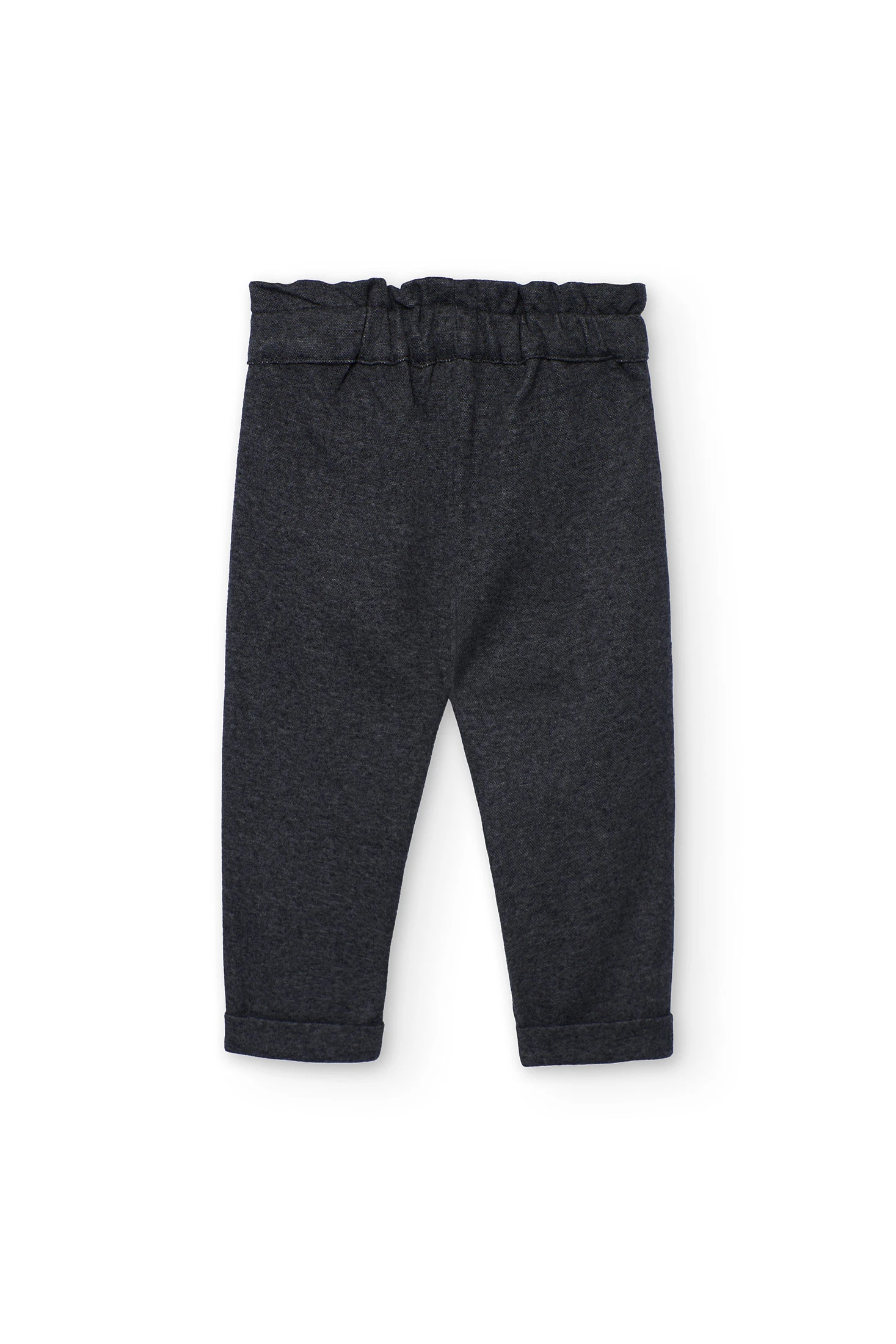 Girl's trousers in knitted flannel, perfect for the autumn and winter seasons, providing warmth and comfort. Crafted from high-quality soft materials, in a charcoal grey colour. Available in sizes from 12 months to 10 years, it is ideal for pairing with T-shirts or jumpers, creating versatile and attractive outfits for any occasion. Its comfortable and cosy design makes it the perfect choice to keep your girl happy and comfortable.