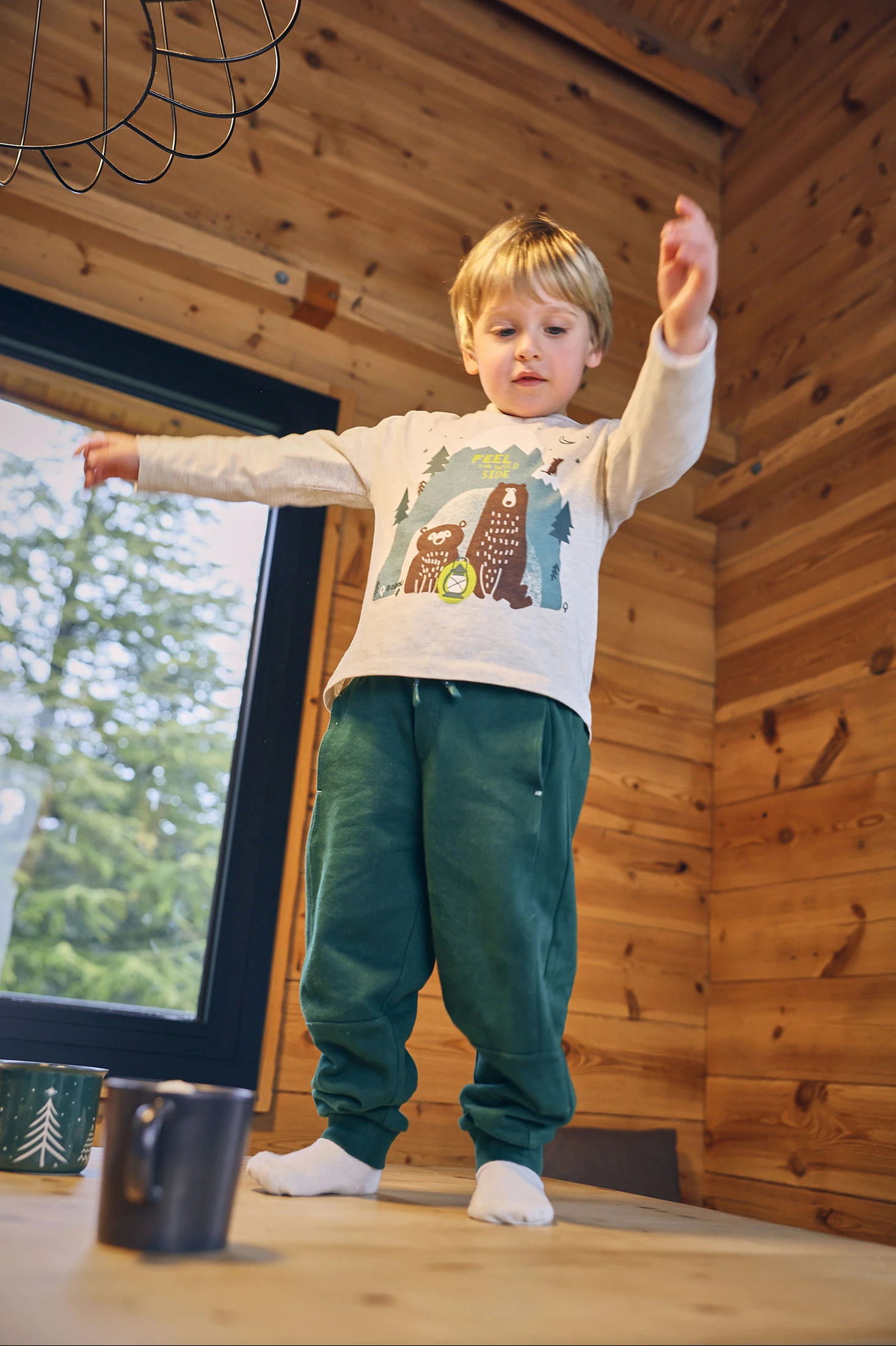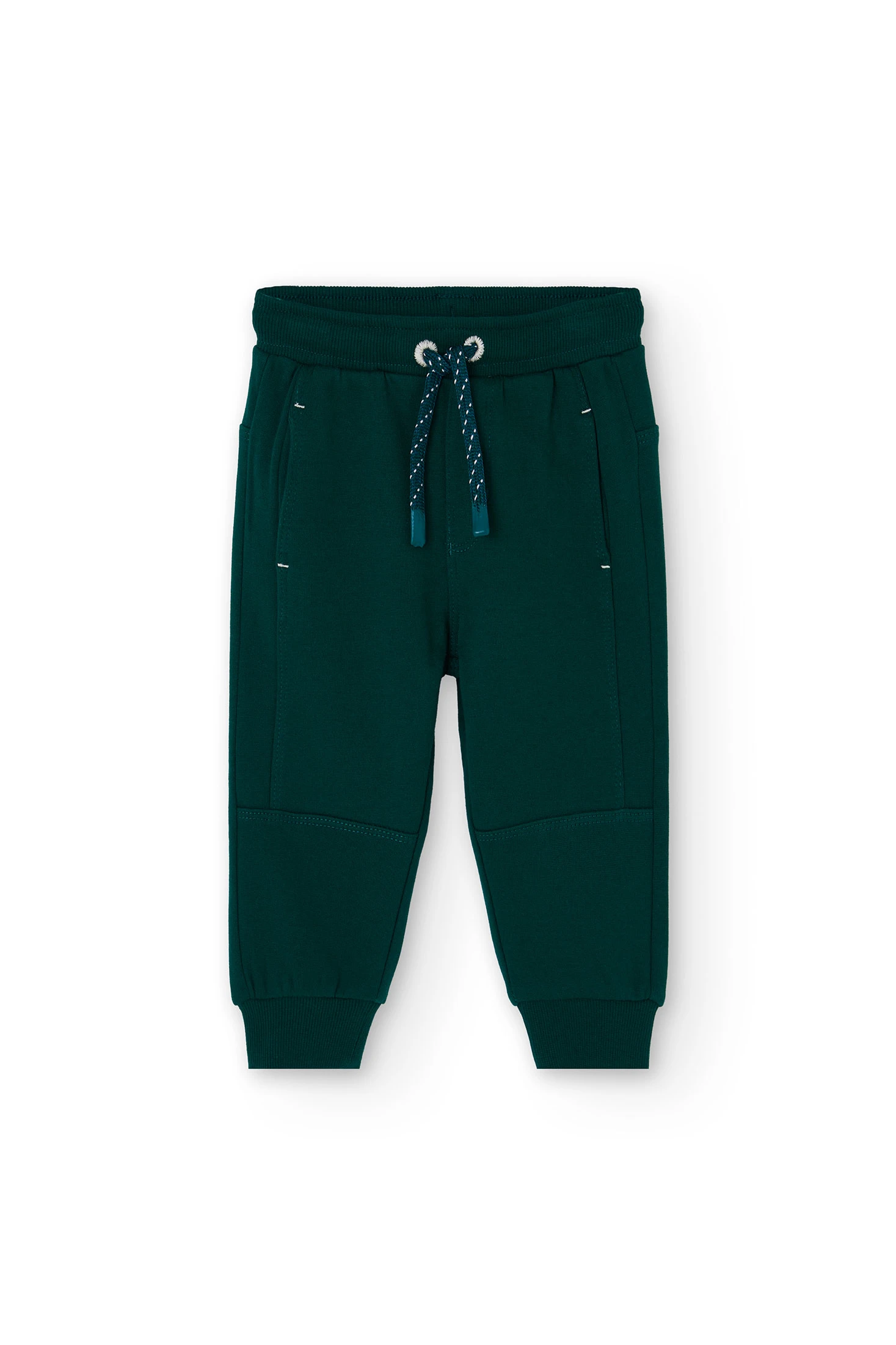 Fleece trousers for boys in green, designed to offer comfort and style for everyday wear. The elastic waistband ensures a secure fit, while the soft fleece fabric provides warmth and comfort. Ideal for autumn and winter seasons, this versatile garment easily pairs with t-shirts or sweaters. Available in sizes from 12 months to 10 years, it's perfect for adding a cheerful and fresh touch to your little one's wardrobe. The vibrant green colour brings a lively vibe to children's style.
