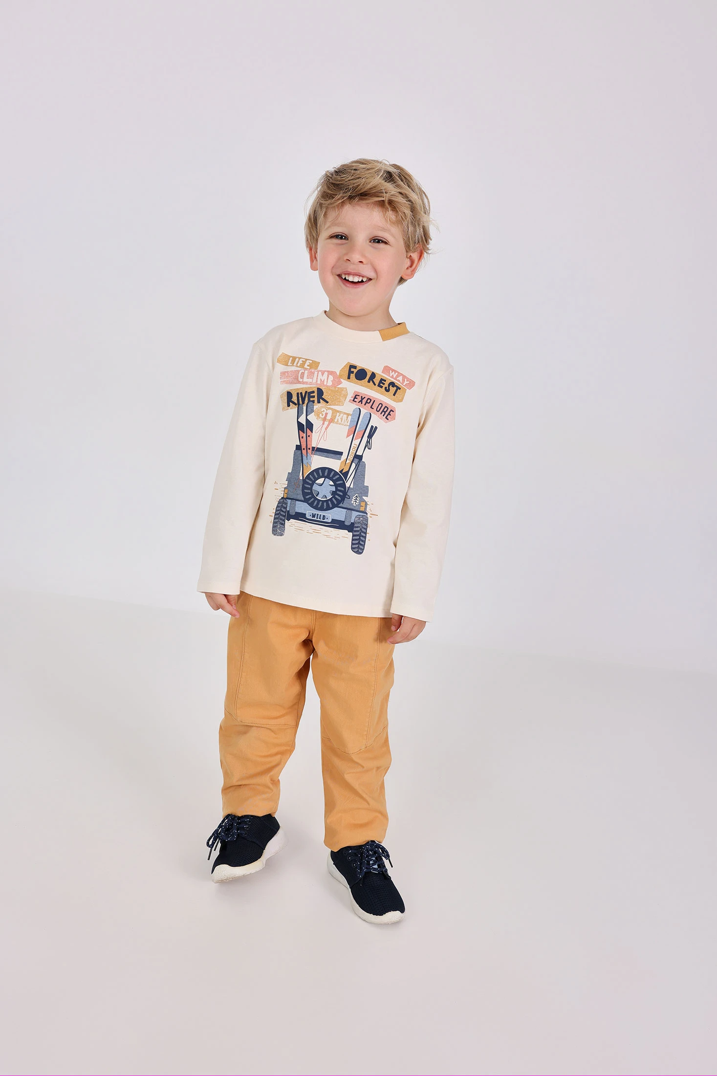 Elastic knit trousers for boys in a cheerful yellow colour, designed to offer style and comfort throughout the year. Made from a durable and flexible material, it ensures a comfortable and long-lasting fit for the little ones. The elastic waistband provides ease of wearing and freedom of movement, perfectly adapting to the child's daily activities. Available in sizes from 12 months to 10 years, these trousers are versatile and easily pair with neutral or colourful T-shirts, adding a touch of liveliness to any children's outfit. Ideal for different seasons and occasions, it is an essential garment in any child's wardrobe.