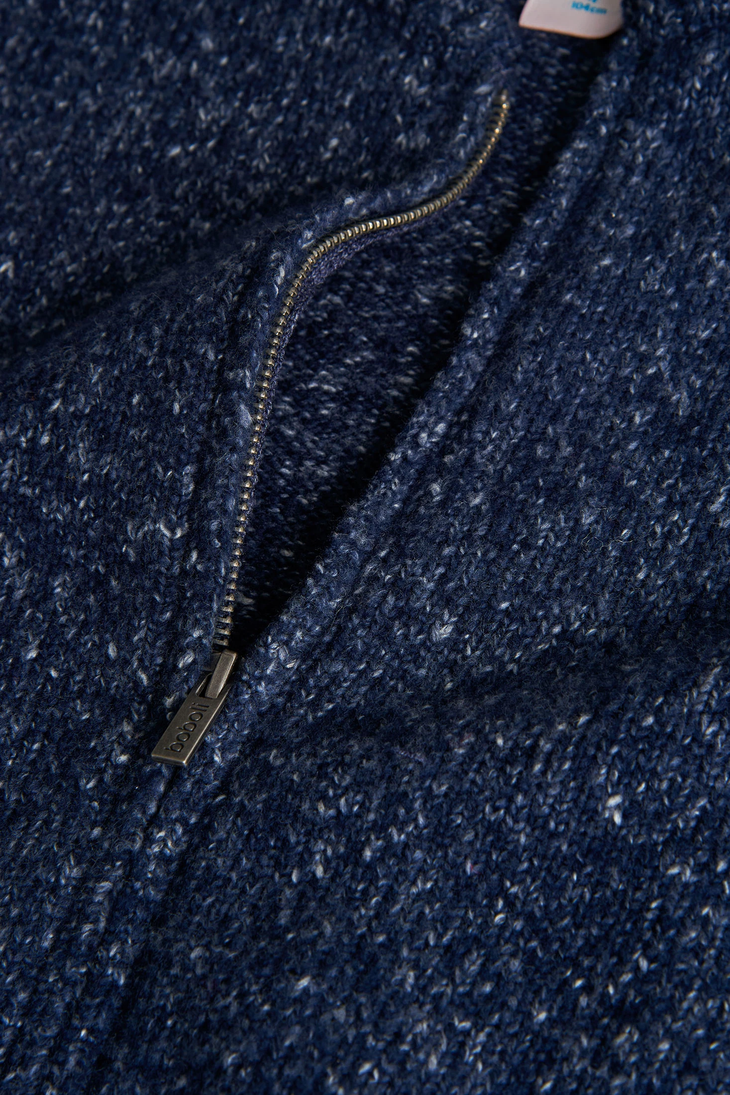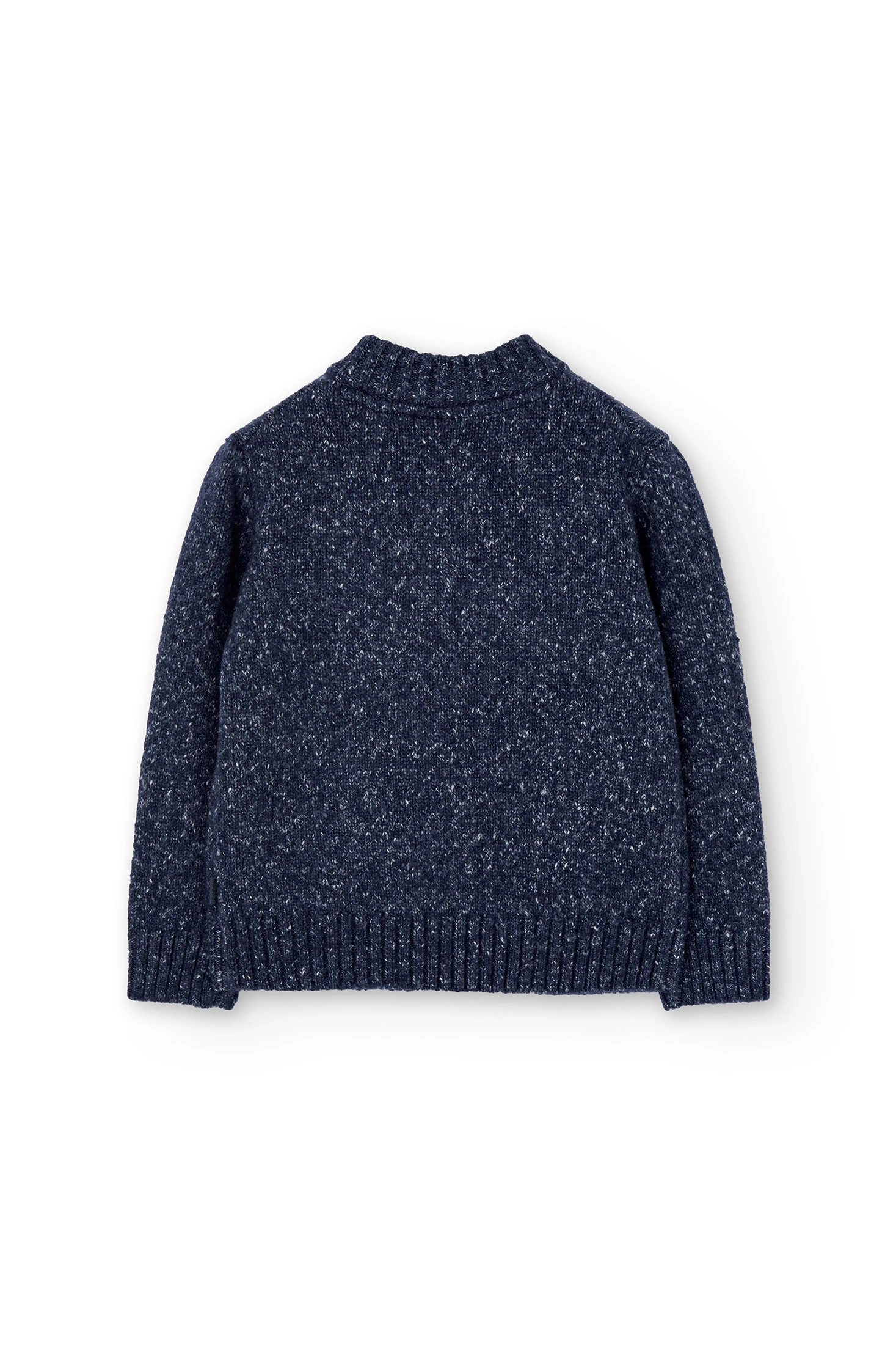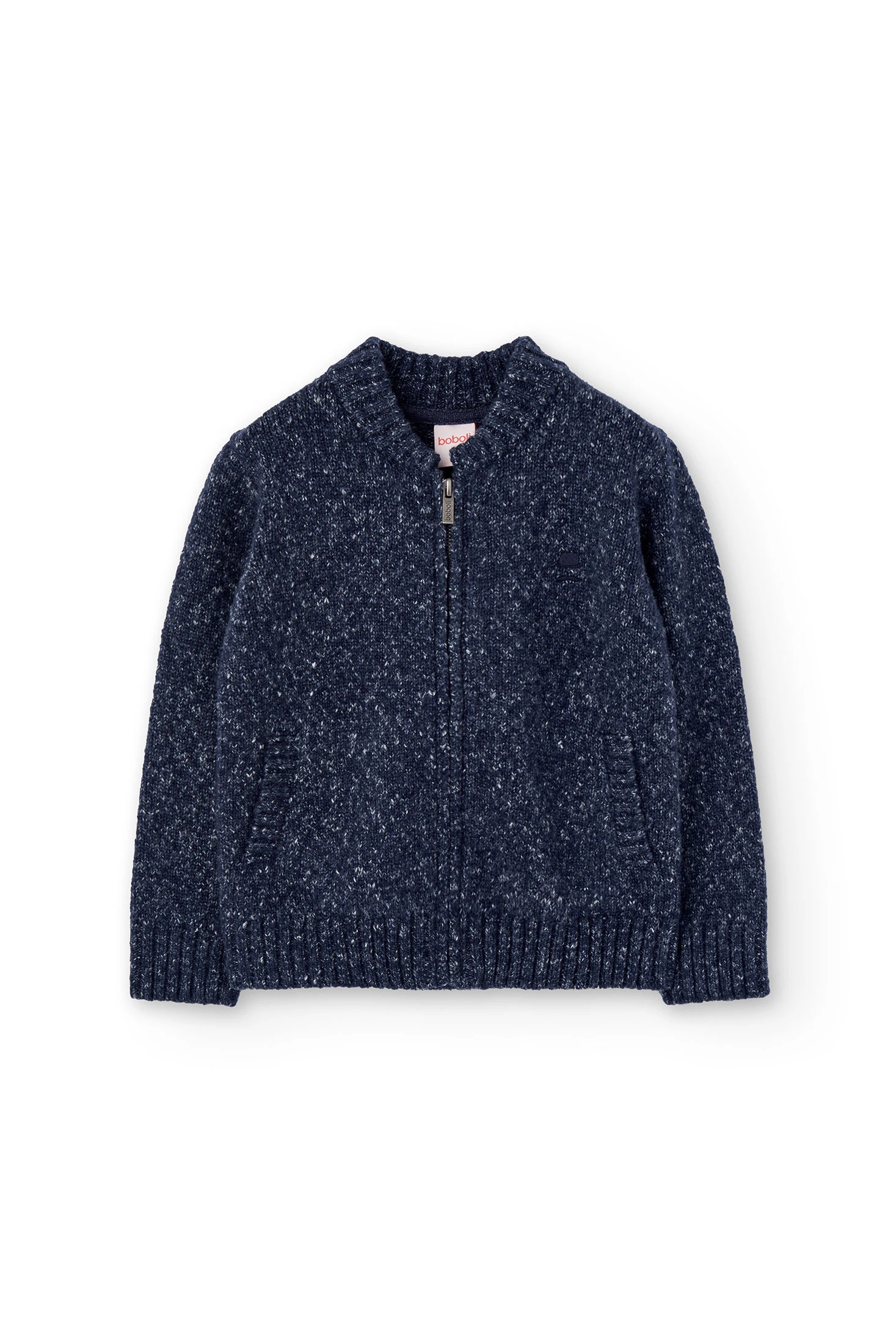 Knitted jacket for boys in navy blue, ideal for the autumn and winter seasons, combining a modern style with functionality. Crafted from soft and warm knitted fabric, it ensures your child stays cosy during chilly days. Features a zip closure and practical pockets, providing comfort and an elegant finish. Available in sizes from 2 to 14 years, this versatile garment complements both casual and more formal outfits, ensuring a flawless look every time.