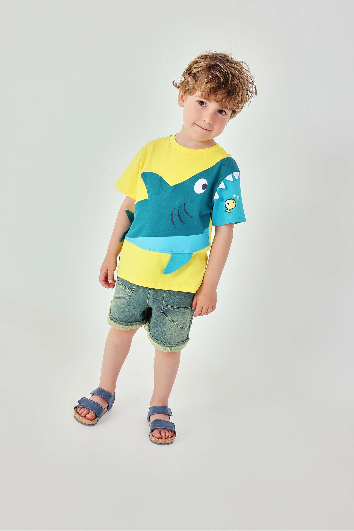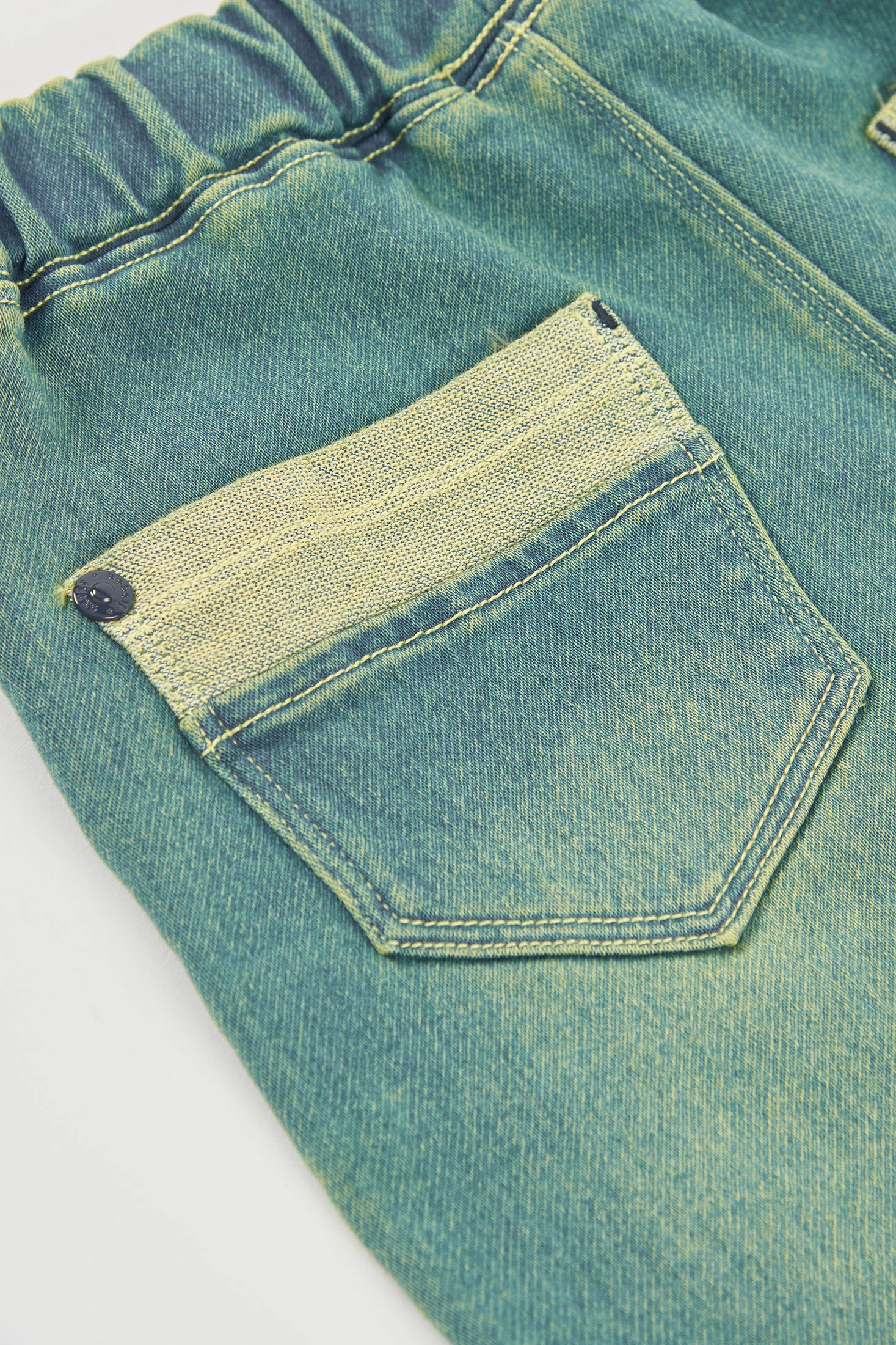 Elastic denim knit shorts for boys are an ideal choice for the summer. Made from a soft and durable fabric, these shorts offer all-day comfort. Their classic design in dirty colour is complemented by an elastic waistband and an adjustable drawstring, making them easy to wear and adaptable to different sizes. They are available in sizes from 12 months to 10 years, making them suitable for a wide range of ages. Perfect for pairing with casual T-shirts, they are a versatile and practical option for everyday wear.