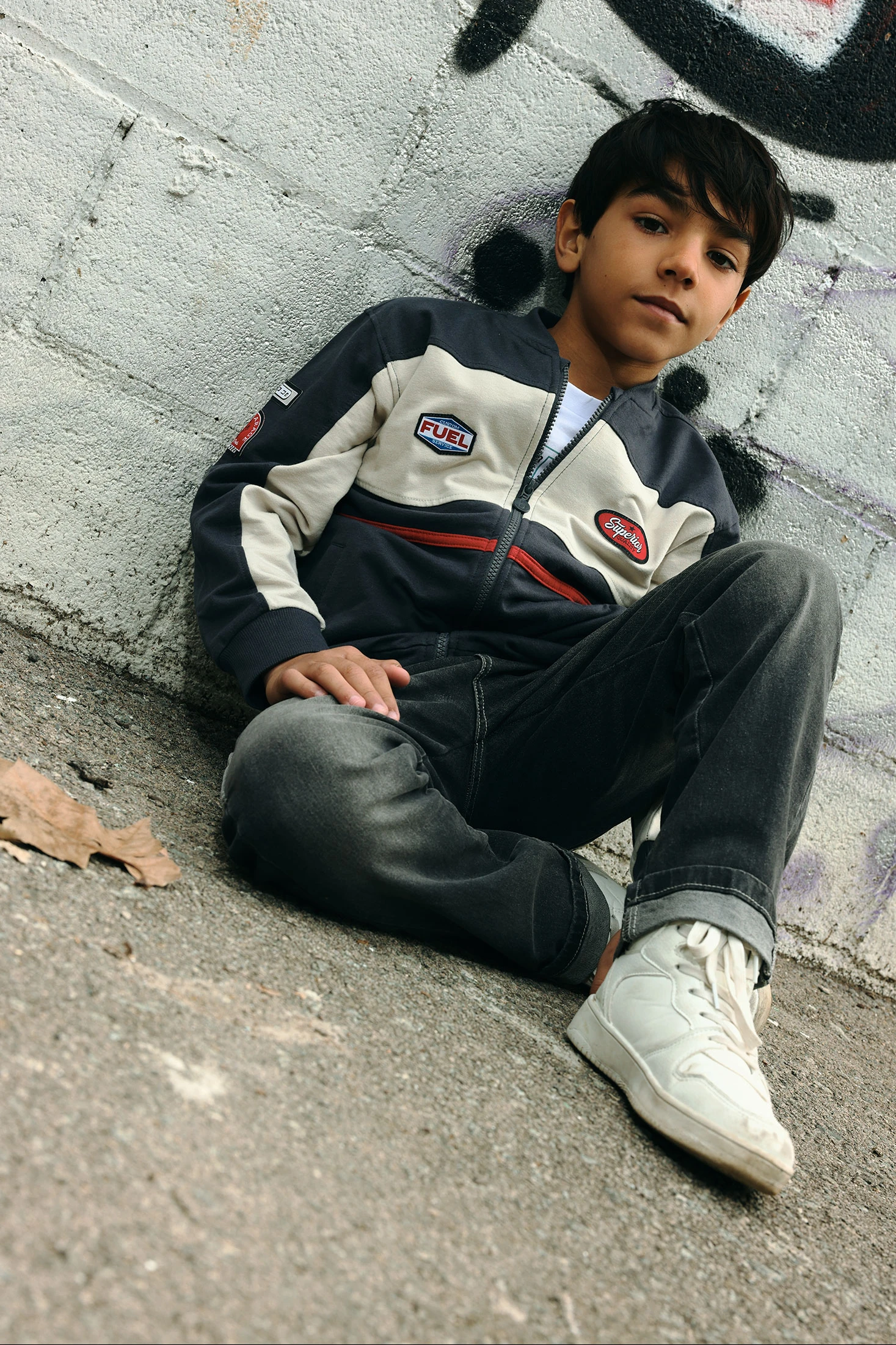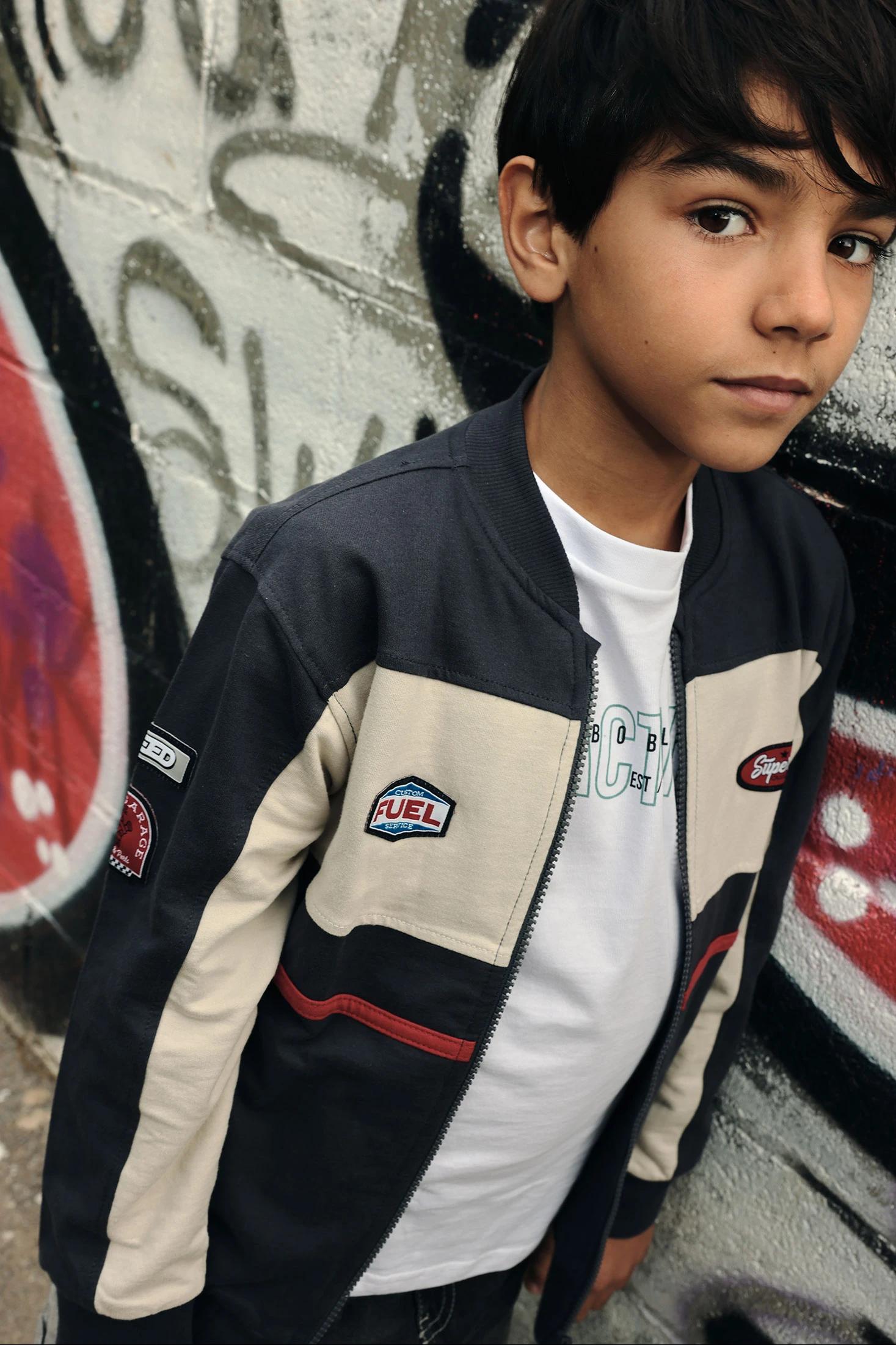 Grey fleece jacket for boys, ideal for autumn and winter. With a modern design and decorative details on the chest and sleeves, it combines functionality and style. Its composition ensures warmth and comfort. Available in sizes from 2 to 14 years, it?s perfect for keeping the little ones warm. The patches and zip fastening add a unique touch. Pairable with jeans and casual trousers, it?s a versatile garment for everyday wear.