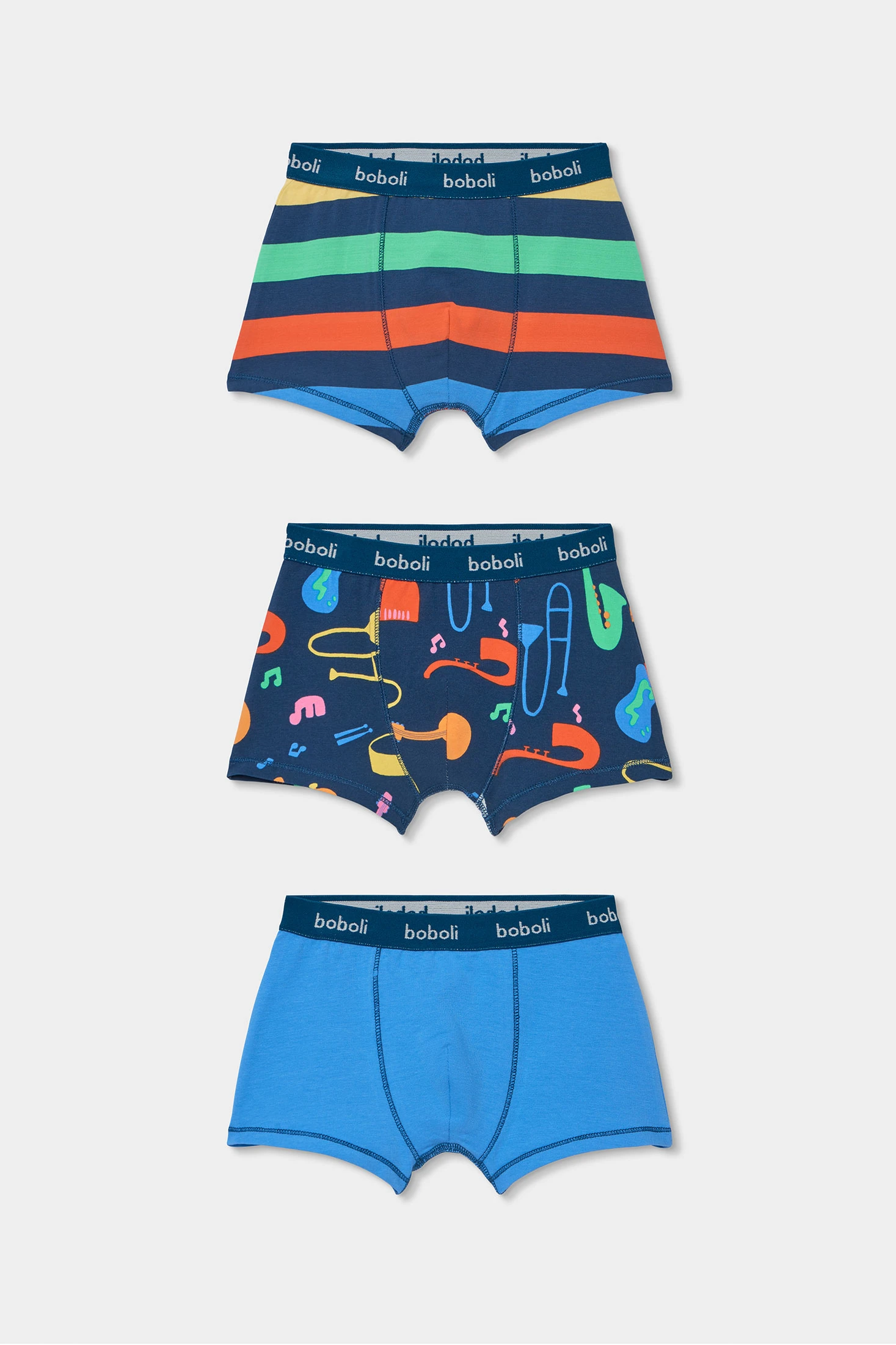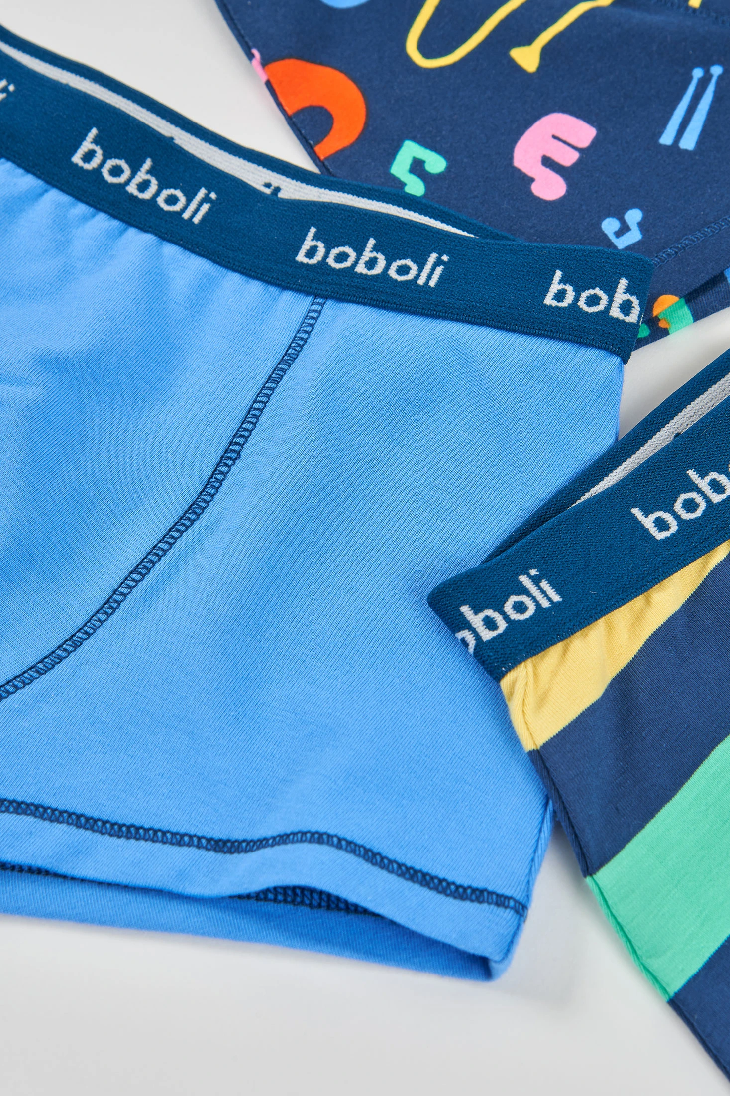 Pack of 3 printed cotton underpants ideal for children. Made from soft cotton which ensures comfort throughout the day. The designs feature dark blue, green, and a multicoloured print with cheerful illustrations. Available sizes range from 2 to 14 years, accommodating the growth of the little ones. Each underpant has an elastic waistband with the logo, ensuring a secure and comfortable fit. Perfect for daily use, combining style and functionality in an essential basic garment.