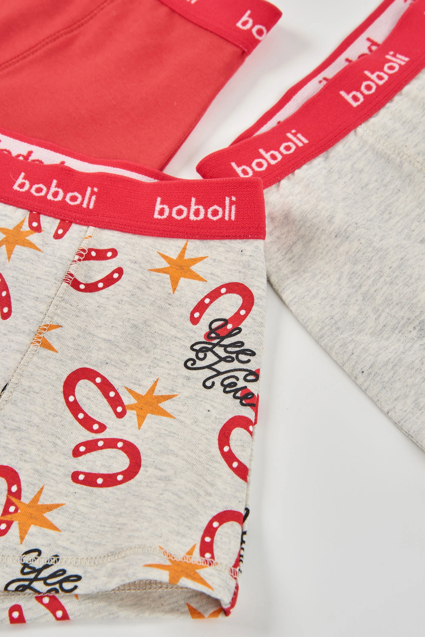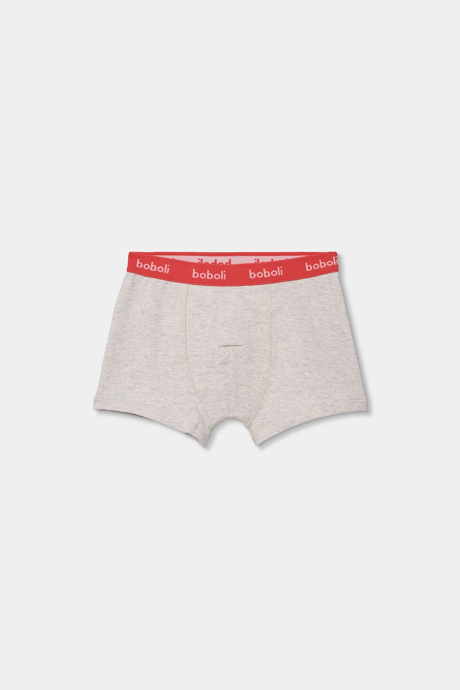Pack of 3 cotton boxers for boys, ideal for daily use, offering comfort and a soft touch. Includes a printed design with various elements, along with plain options in red and grey. Elastic waistband ensures a perfect and comfortable fit. Available in sizes from 2 to 14 years, this set is versatile and practical. The mix of vibrant and neutral colours allows for easy combinations with different styles of clothing. Perfect for providing comfort and style on any occasion.