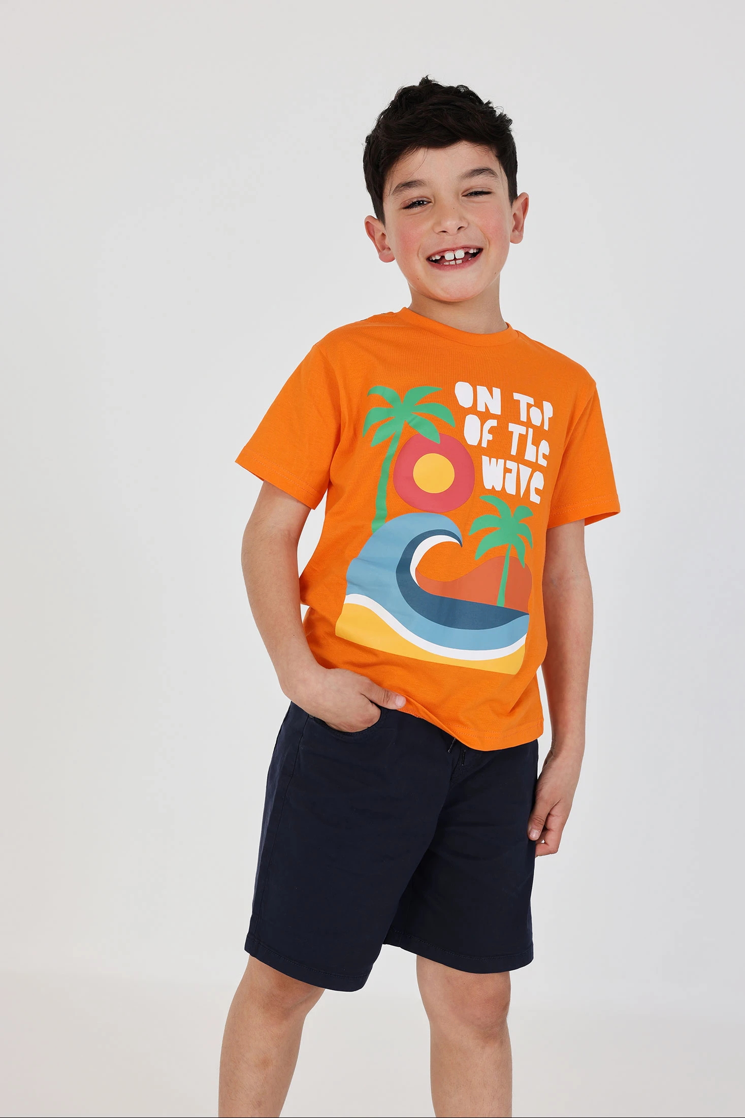 Elastic gabardine Bermuda shorts in navy blue, perfect for the little ones, combining comfort and style. Their soft fabric is ideal for summer, while the simple design ensures versatility. They feature an elastic waistband with an adjustable drawstring for a secure fit. Without prints, their solid colour allows easy pairing with t-shirts and polo shirts. Available in sizes from 12 months to 14 years, they are a practical choice for any casual occasion.