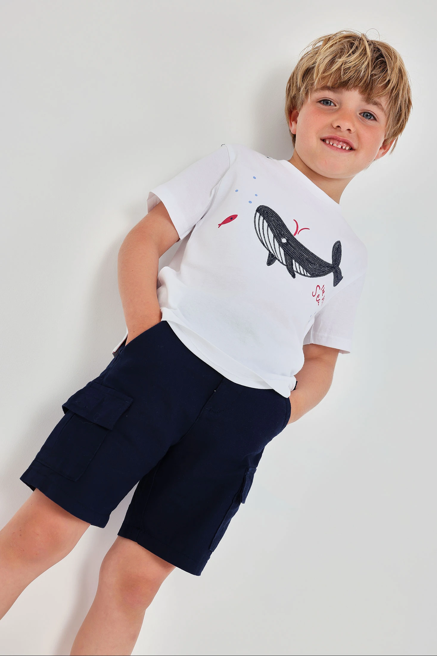 Navy linen bermuda shorts perfect for summer days, offering comfort and style thanks to their lightweight and breezy fabric. With a classic design and cargo pockets, they are functional for any activity. Available in sizes from 12 months to 10 years, catering to the growth of little ones. Their navy colour makes them versatile and easy to pair with brightly coloured or fun patterned T-shirts. An essential garment for a casual and fresh look on the hottest days.