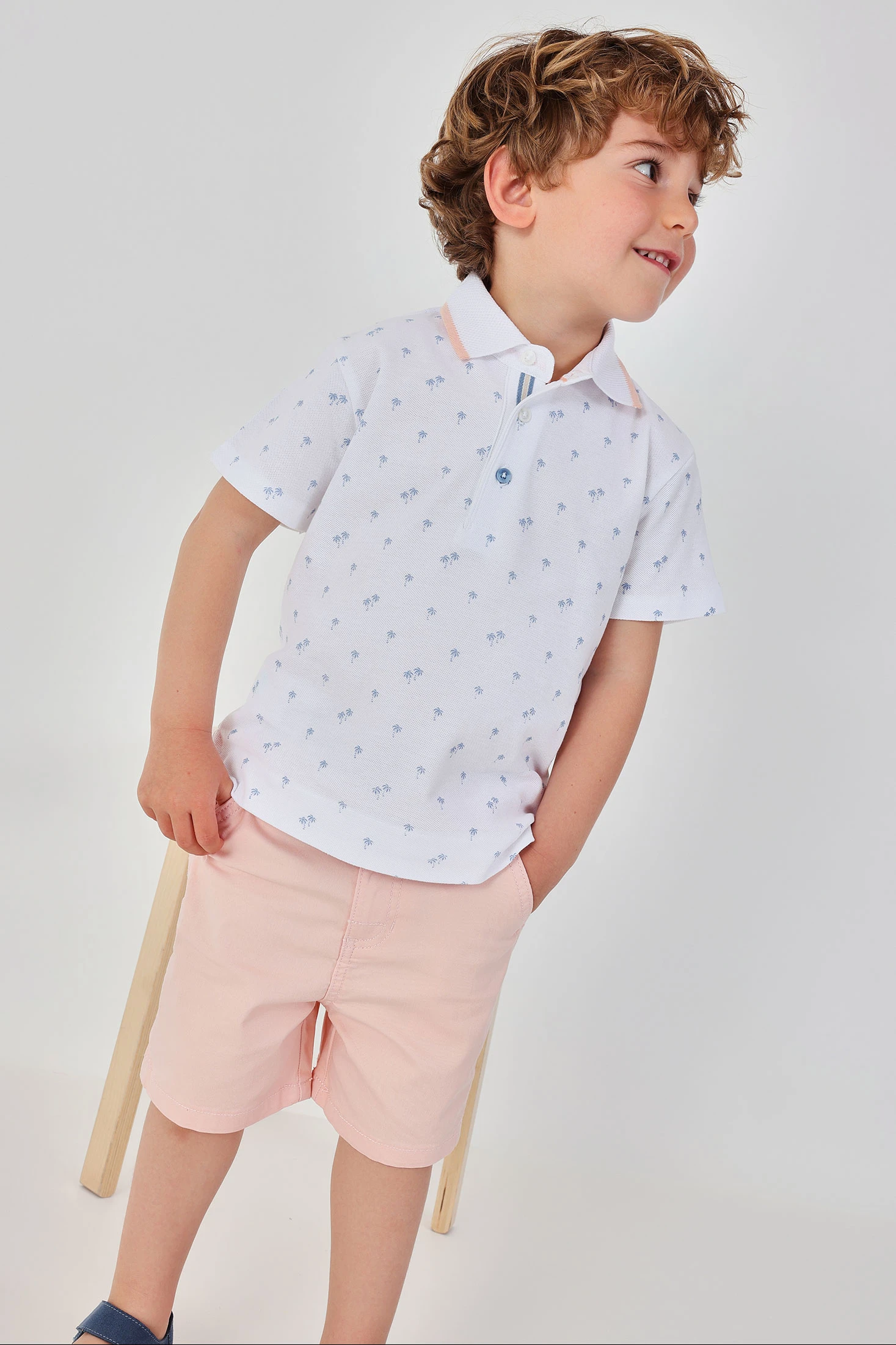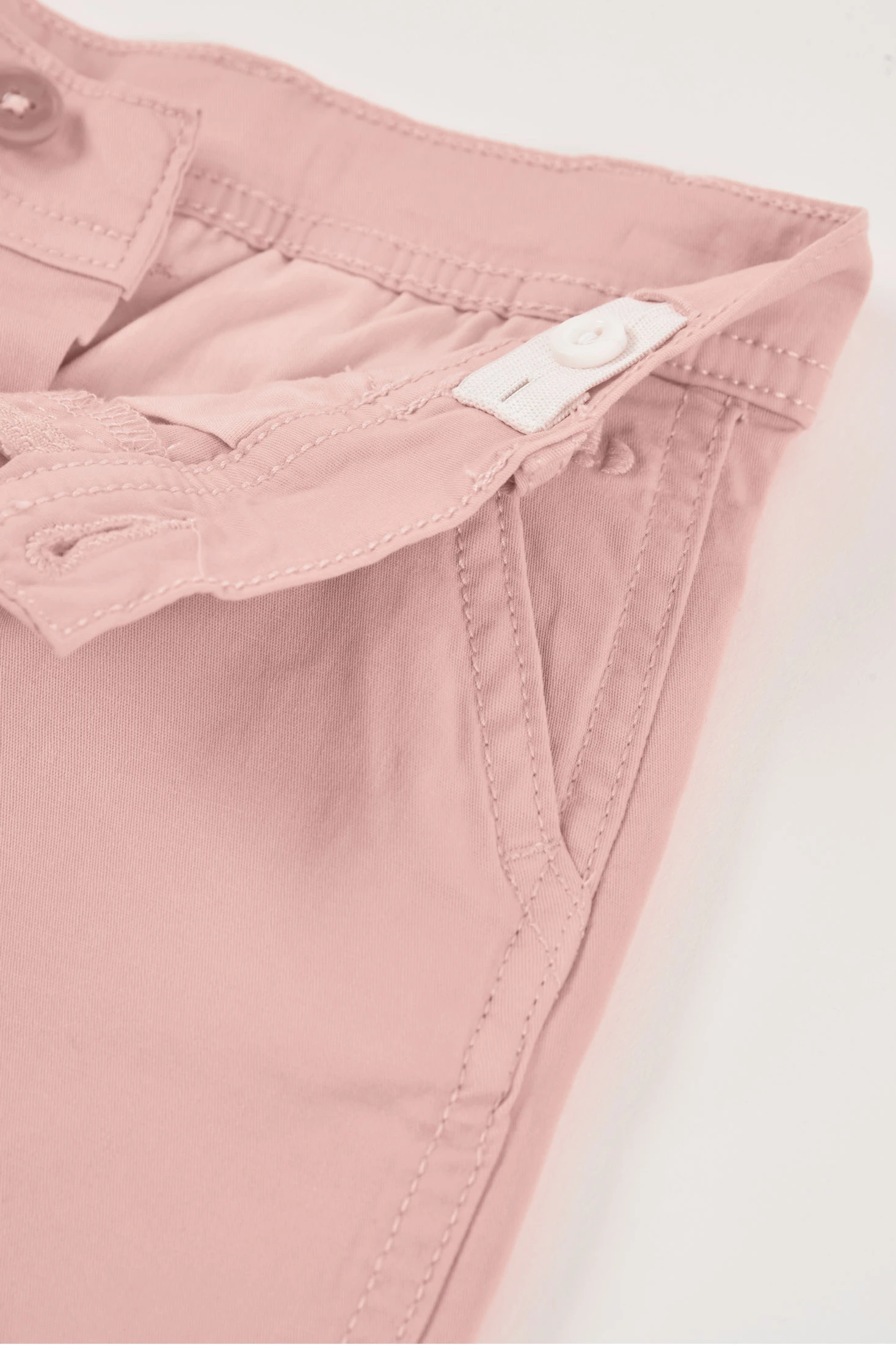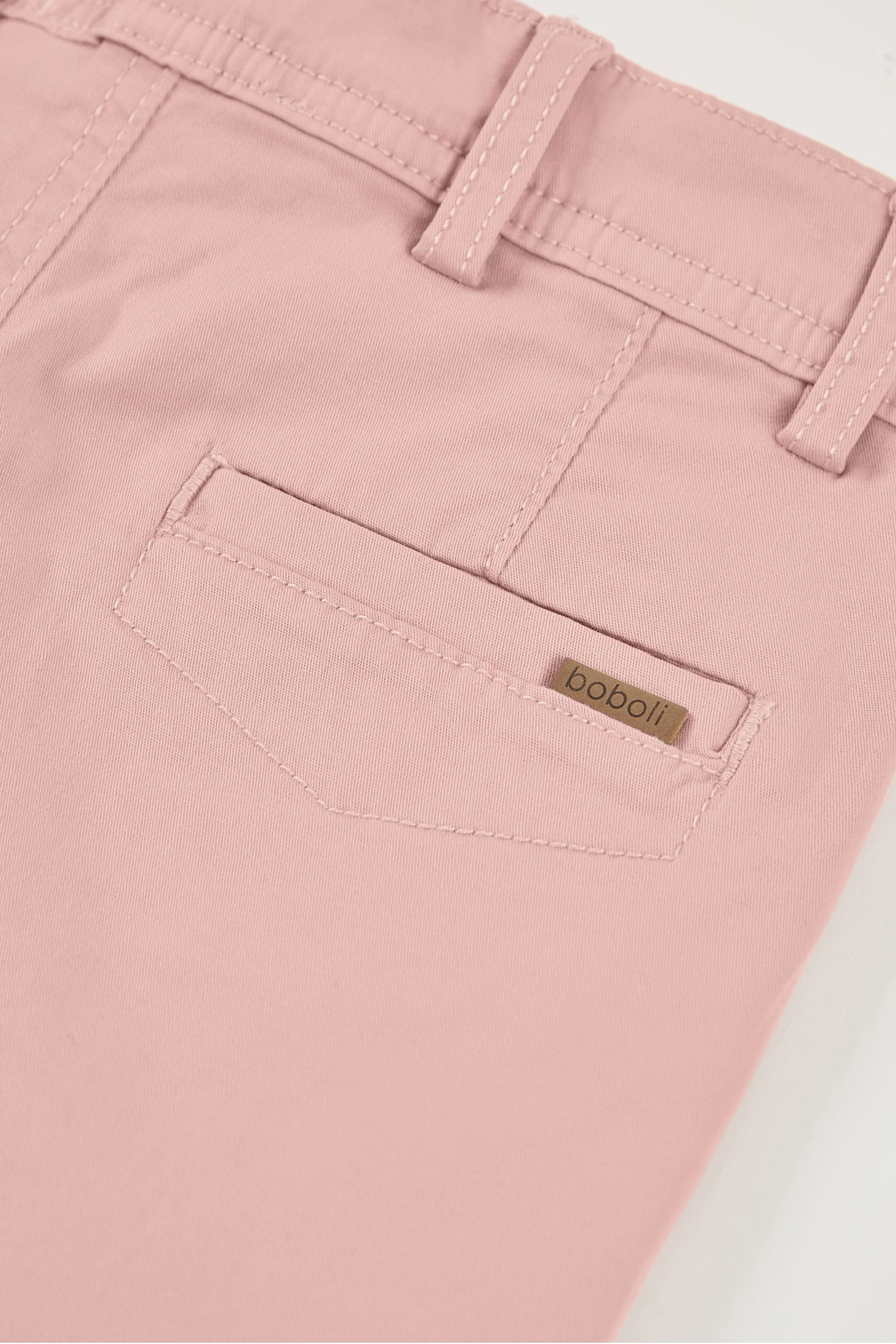 Cotton bermuda shorts in salmon colour, ideal for children, combine style and comfort. Their plain design offers versatility for different occasions. Crafted from cotton fabric, they are soft to the touch and cool for warm days. Available in sizes from 12 months to 10 years. The adjustable waist and front pockets add functionality. Perfect for pairing with T-shirts or light blouses, offering a fresh and modern look.