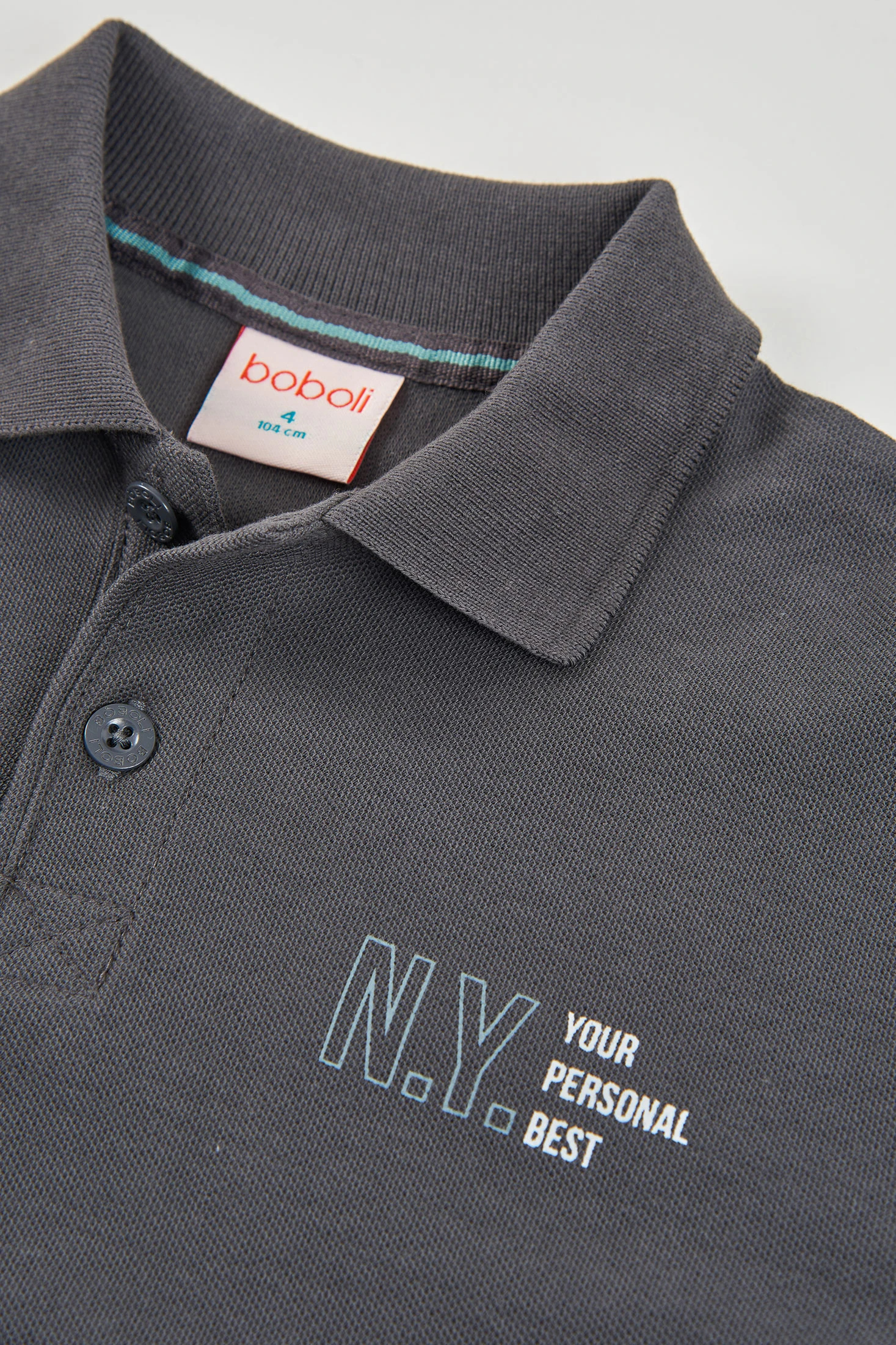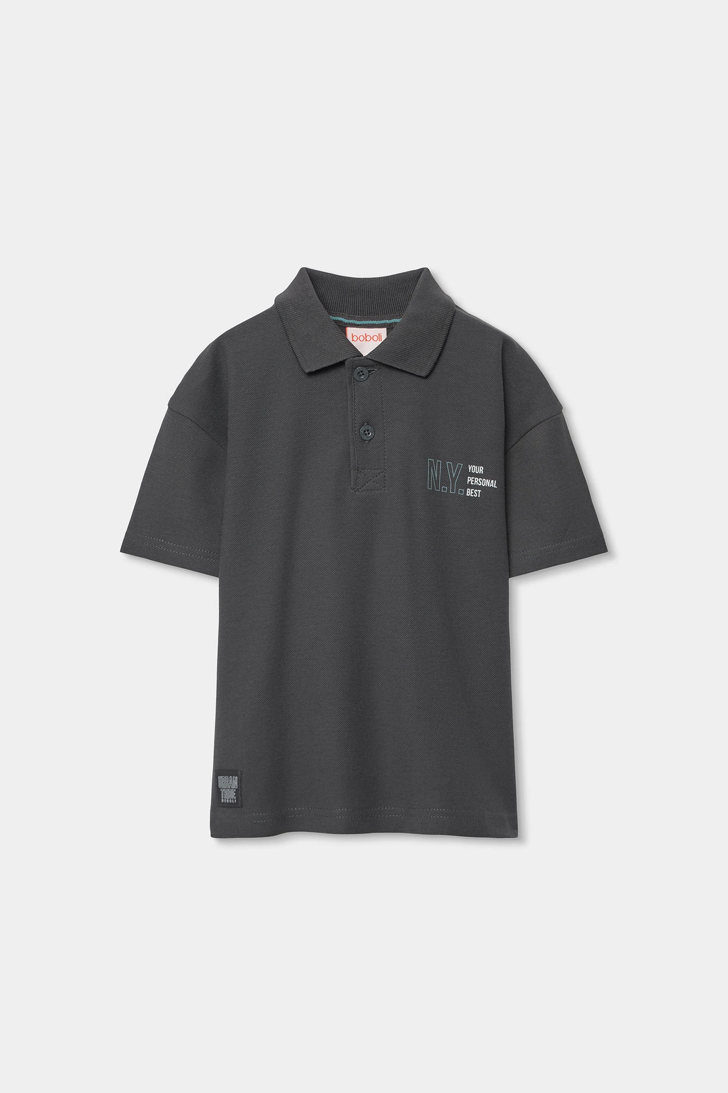 Children?s polo shirt made from grey cotton, a soft and comfortable material, ideal for children?s sensitive skin. The classic design features a polo collar and front buttons, making it easy to put on. Perfect for ages 2 to 14, it is versatile for both casual and slightly more formal occasions. Its grey colour makes it easy to pair with different styles and garments. A subtle detail on the chest adds a touch of interest without being overwhelming, making it an elegant option for any wardrobe.