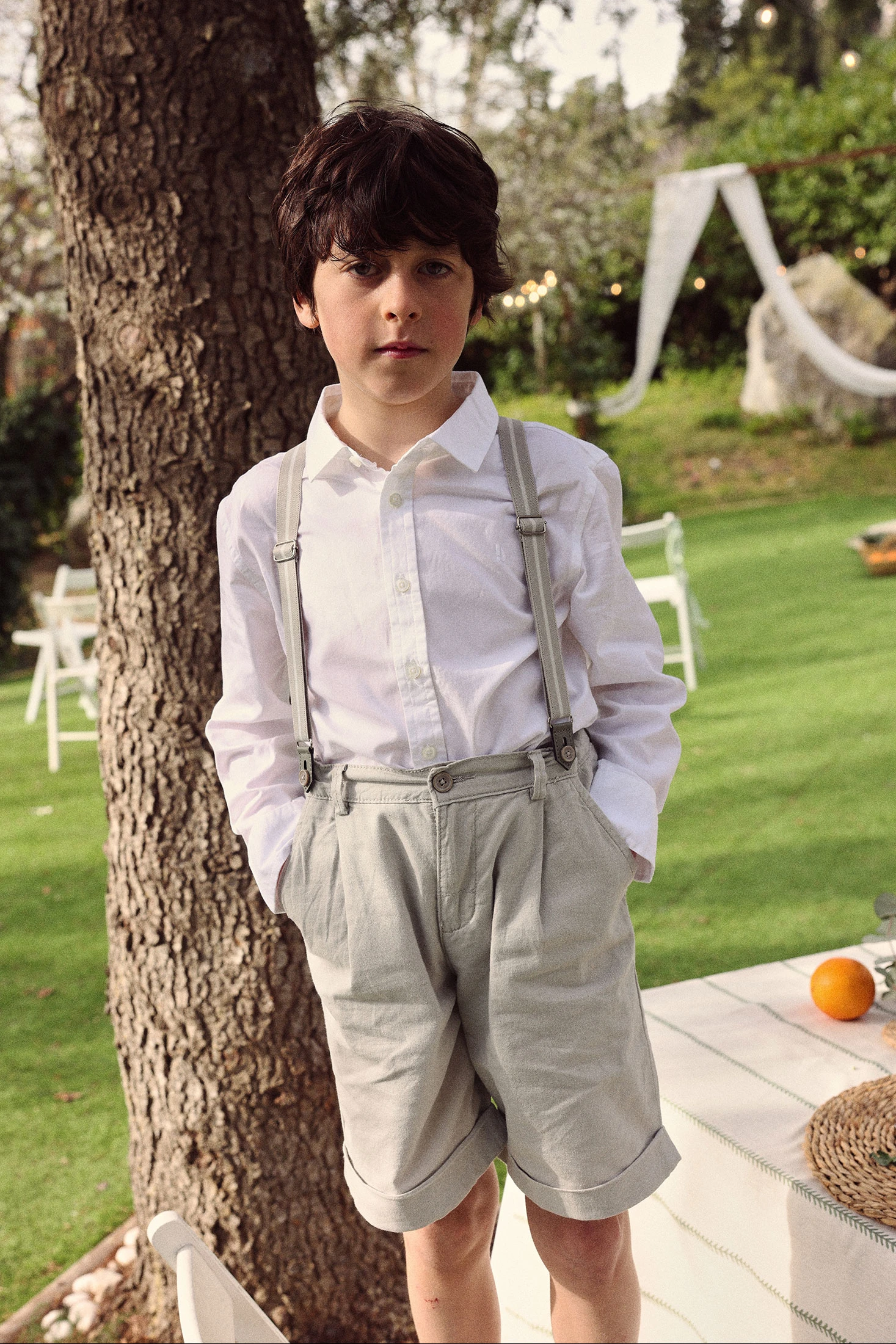 Grey linen braces Bermuda shortsBuy kids fashion designer clothes for babies and children in the boboli online store. Discover our collection!
