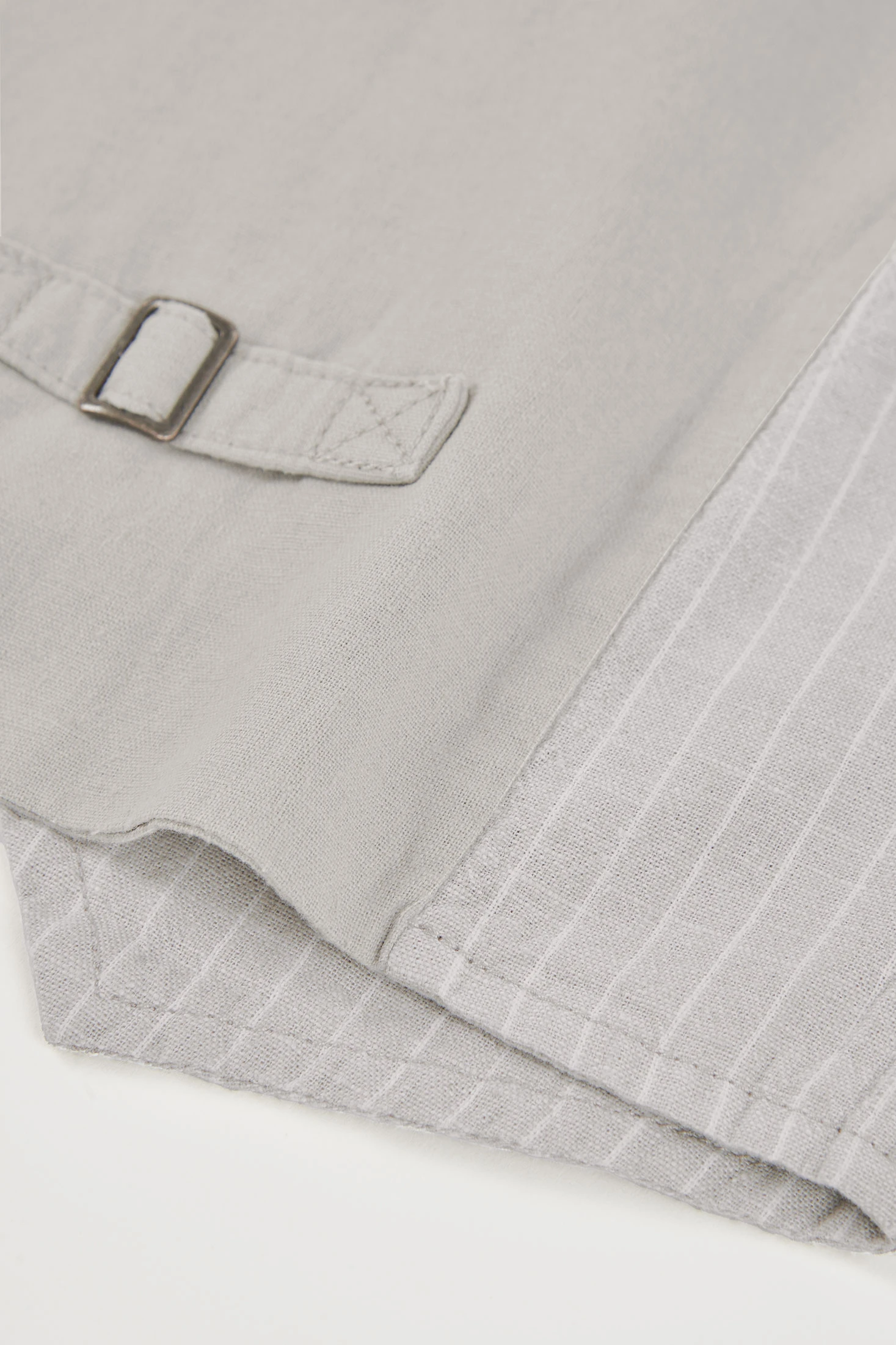 Linen waistcoat for boys, perfect for an elegant and fresh look. It features a striped design in a soft beige colour, ideal for pairing with various styles. Made from a lightweight and breathable material, it provides comfort on any occasion. Available in sizes from 12 months to 12 years, it adapts to the growth of little ones. The waistcoat has a button fastening and two decorative pockets on the front, adding a chic touch. Perfect for formal events or to add a sophisticated touch to everyday wear.