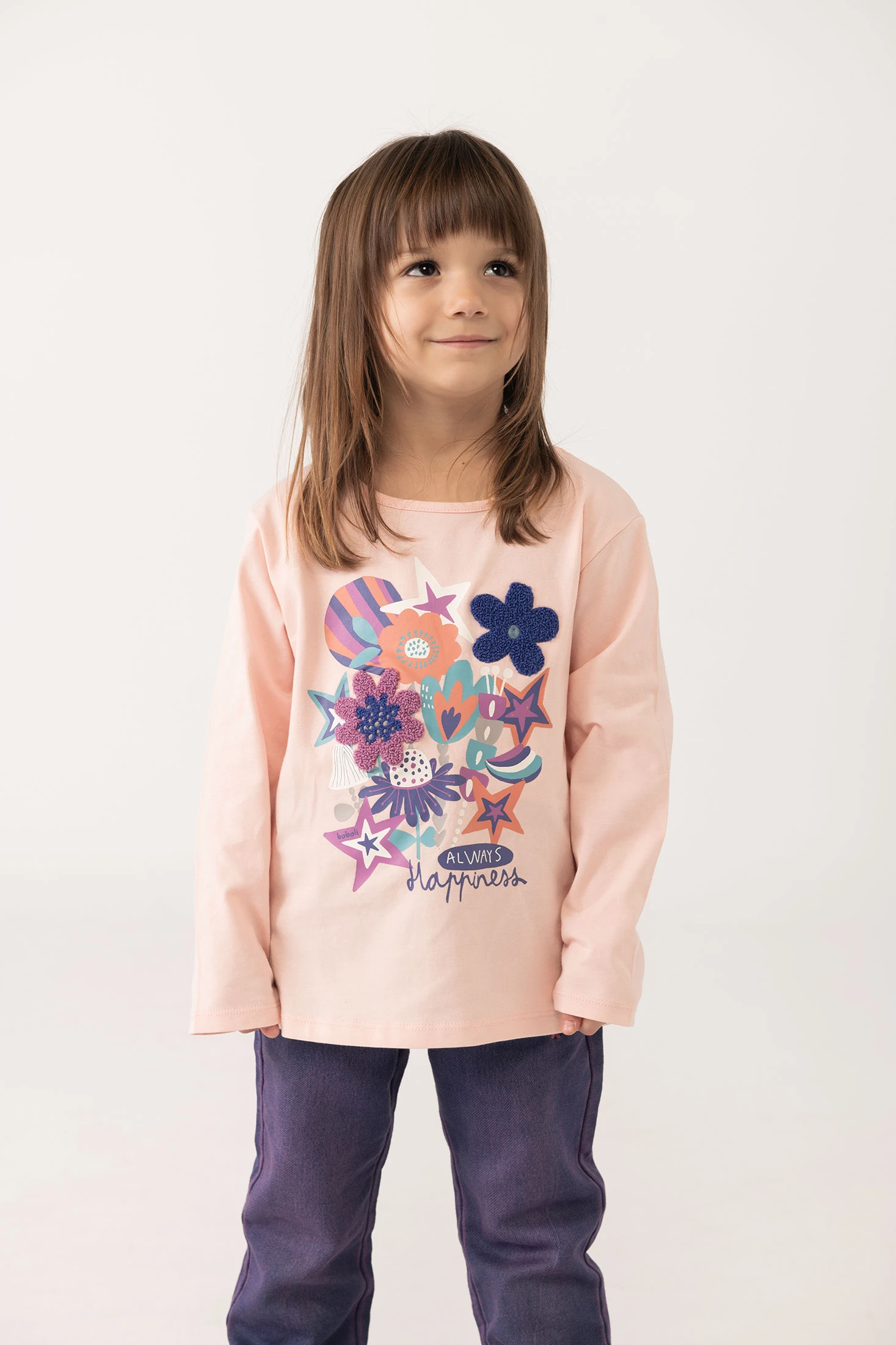 Knitted pink T-shirt for girls with a charming floral print, designed to add a sweet touch to a child's wardrobe. Ideal for the autumn and winter season, its fabric provides warmth and flexibility. The round neckline and long sleeves offer additional comfort on cooler days. Available in sizes from 12 months to 10 years, this T-shirt is easy to pair with trousers or skirts, creating versatile and cheerful looks.