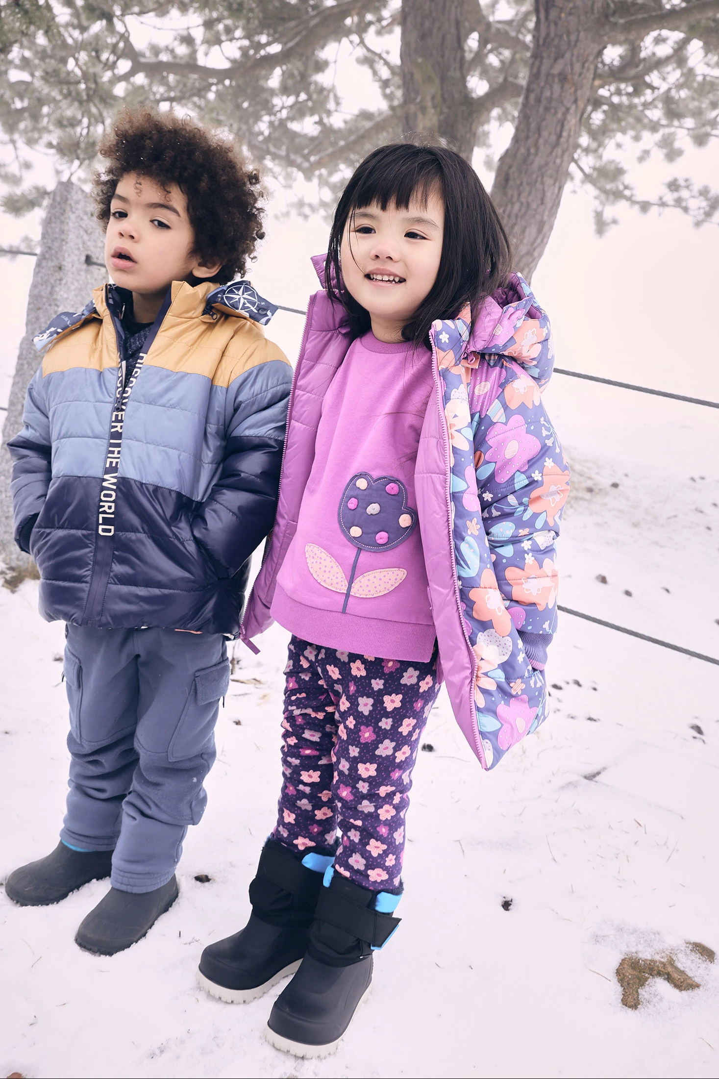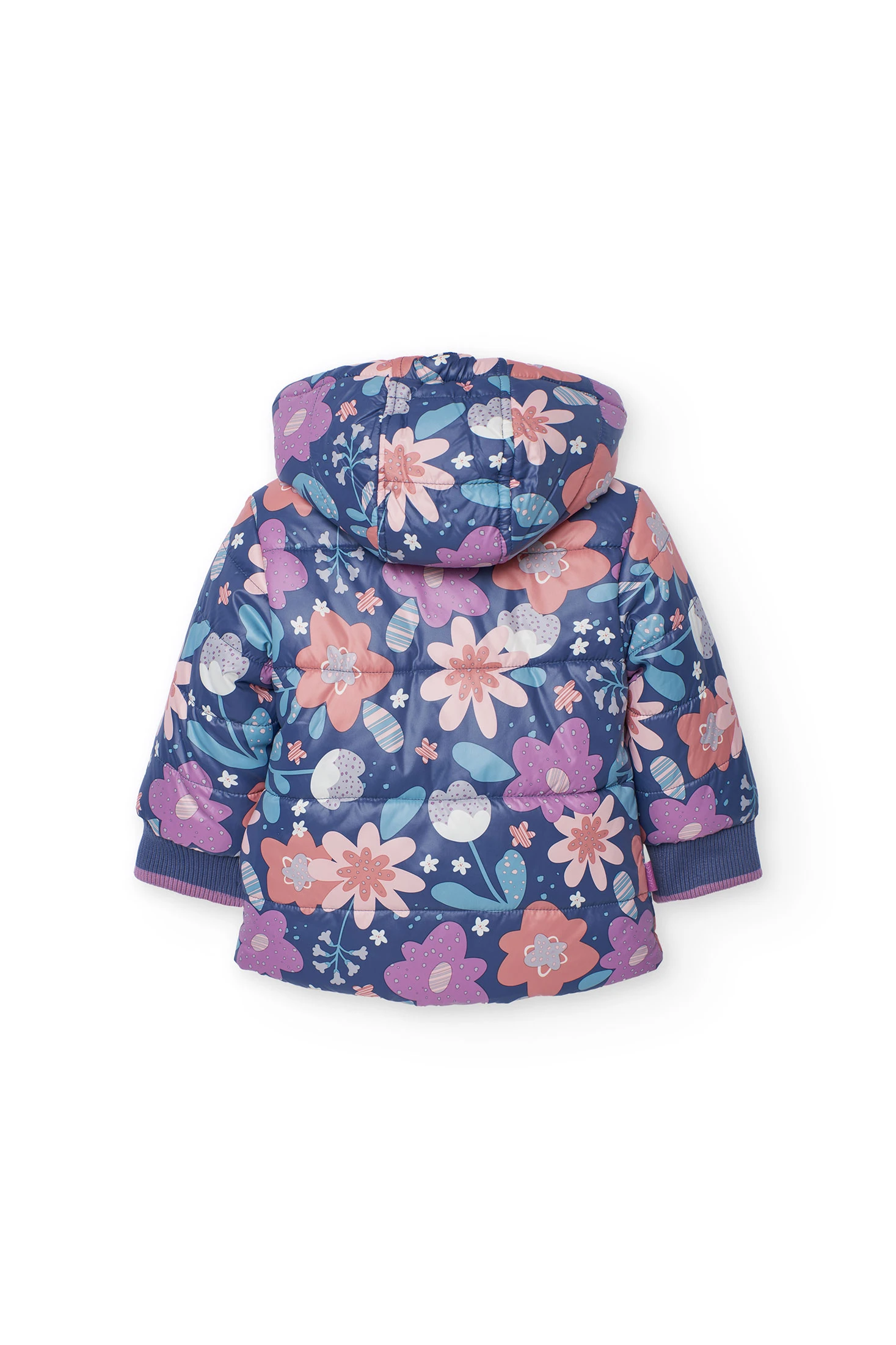 Reversible parka for girls made from printed technical fabric, perfect for mid-season and winter. It features one side with vibrant flowers and a solid colour reverse, providing versatility and style. Wind and water-resistant, the garment offers protection on cold and rainy days. It includes a detachable hood and zip closure for added comfort and adaptability. Available in sizes from 12 months to 10 years, this parka is ideal for pairing with trousers or leggings, ensuring warmth and fashion on every outing.