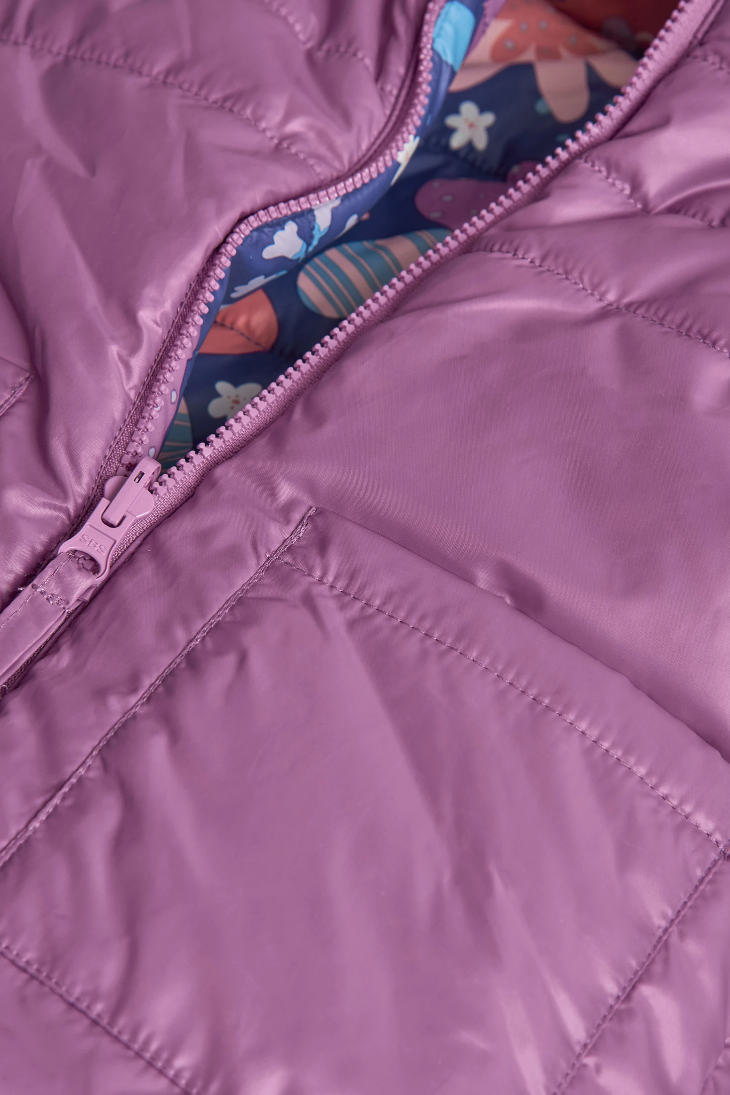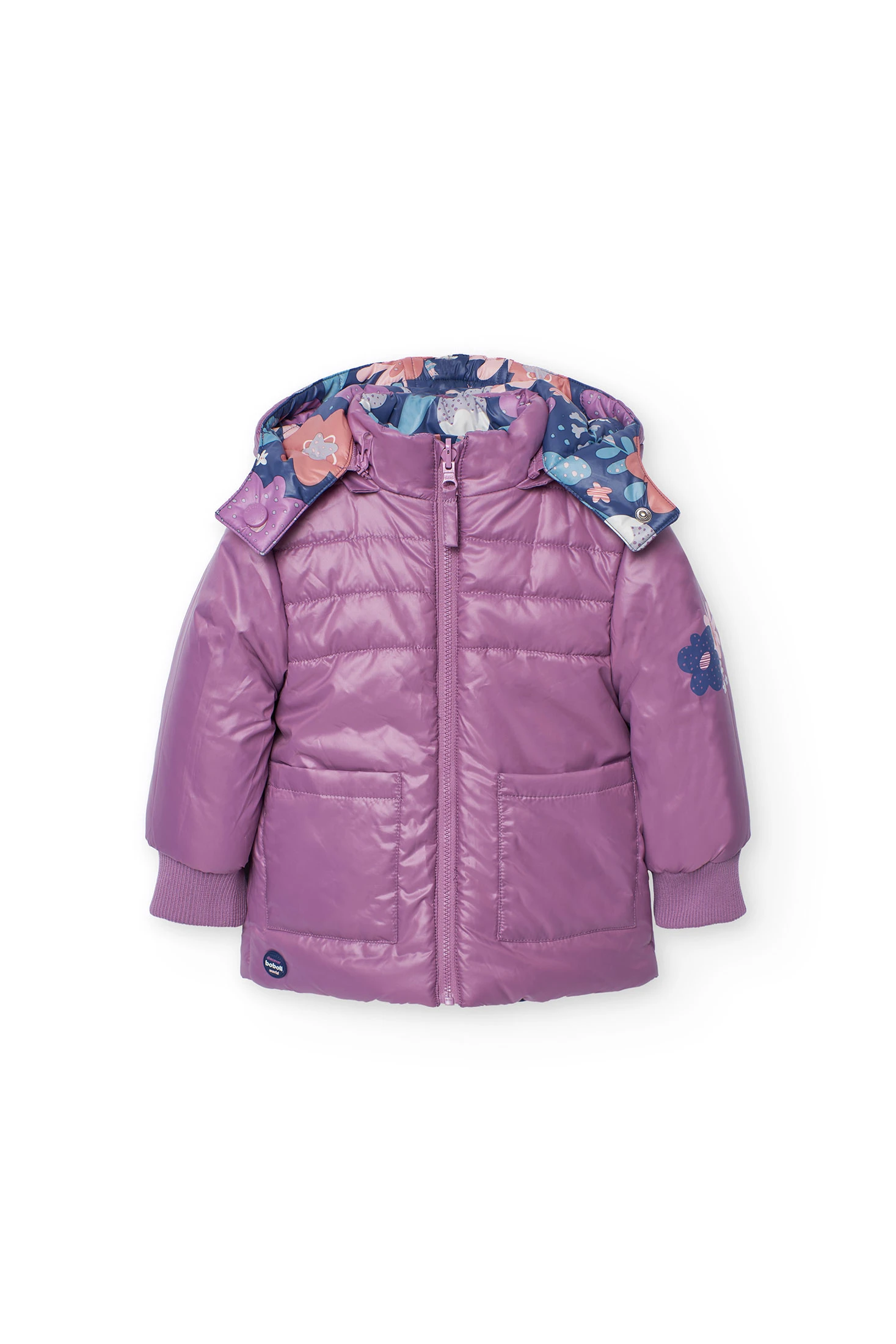 Girls\' technical fabric reversible parka in lilac with flowers
