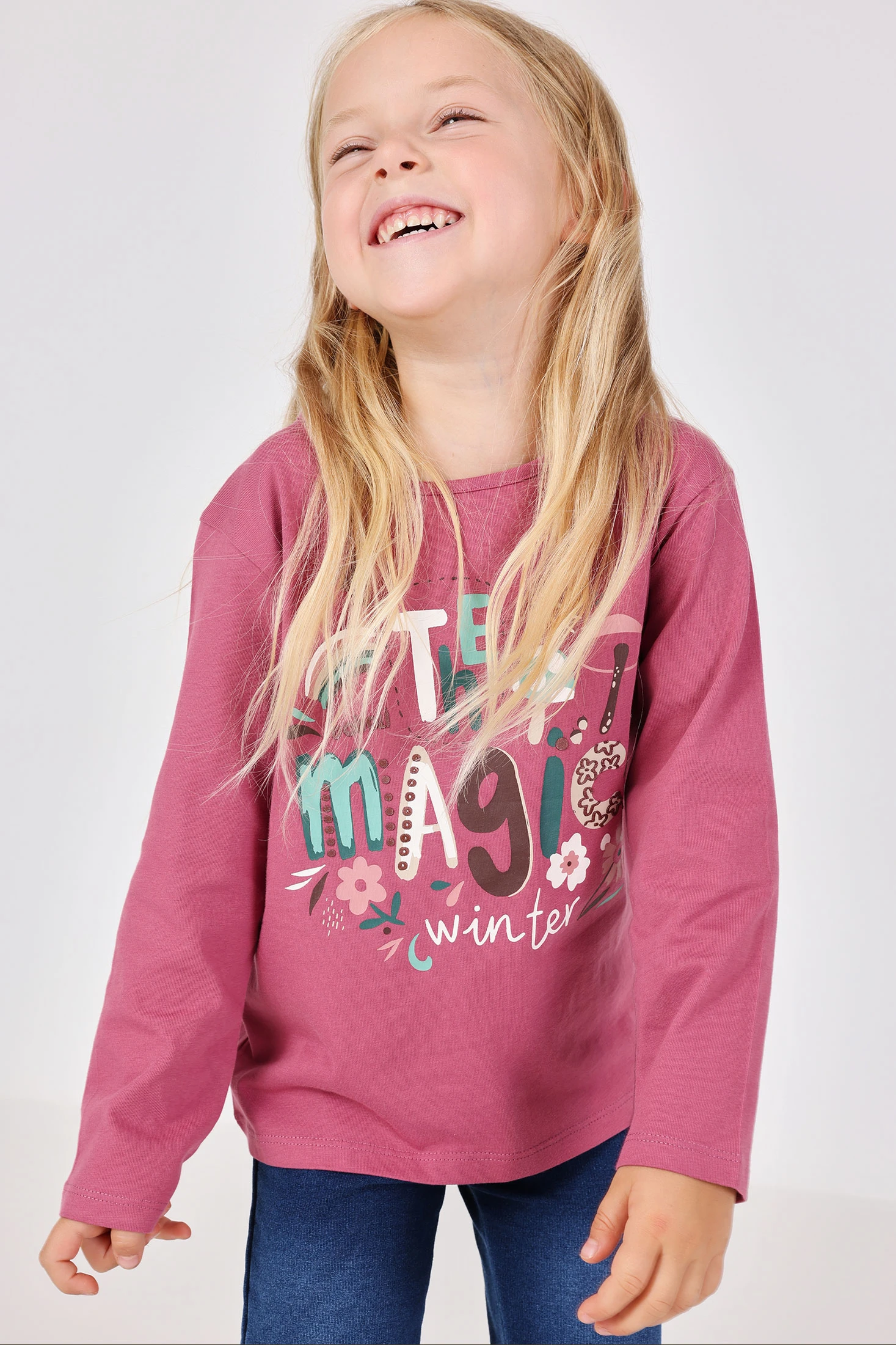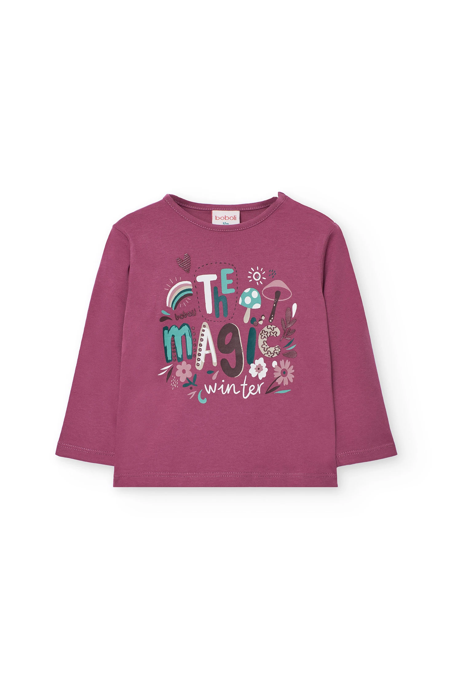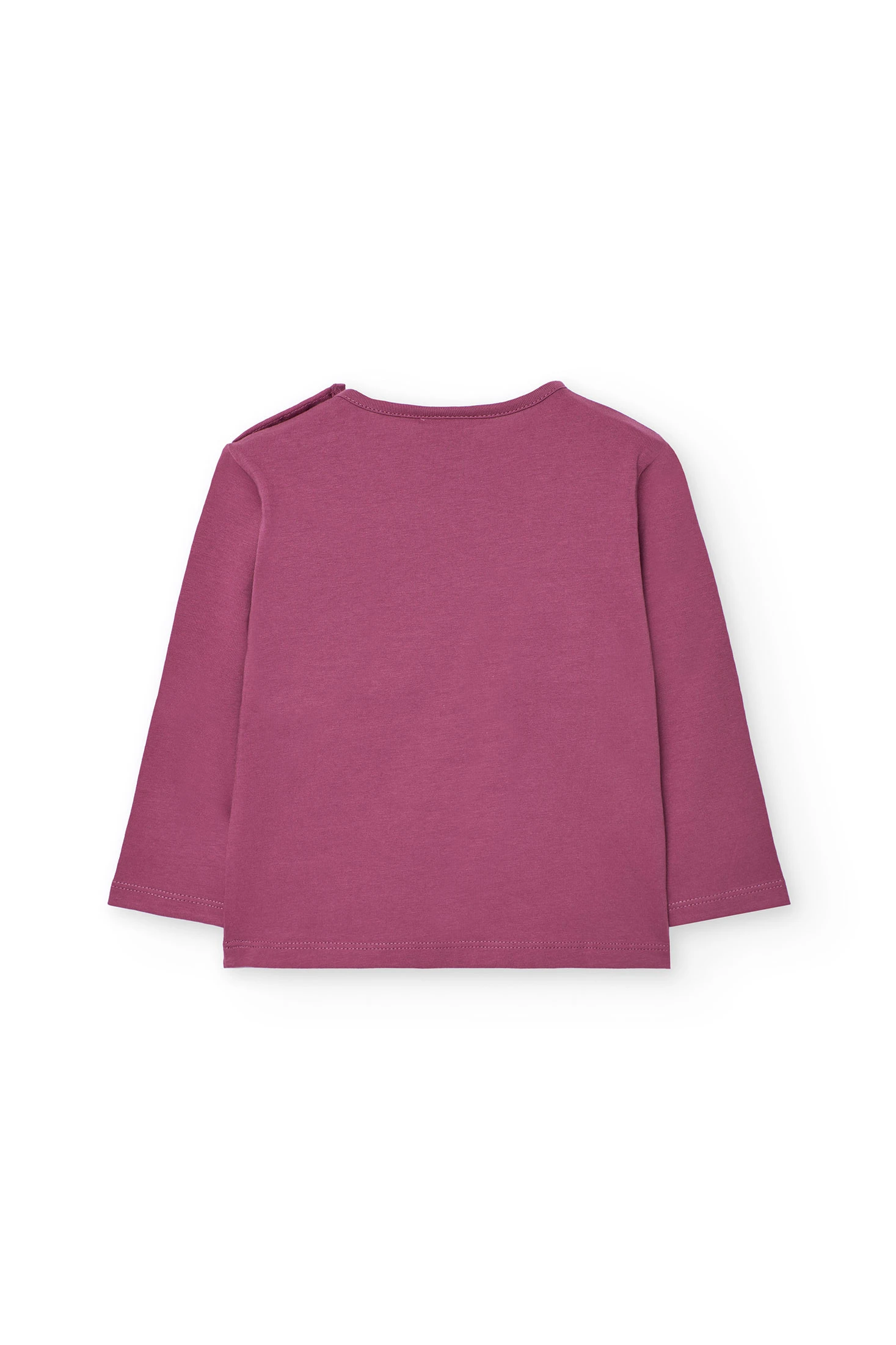 Strawberry cotton t-shirt for girls, ideal for autumn and winter. Its vibrant strawberry colour, together with the round neck design and long sleeves, provides a balance of warmth and freshness. Available in sizes from 12 months to 10 years, this t-shirt is versatile and easy to pair with trousers or skirts, adding a cheerful touch to any outfit.