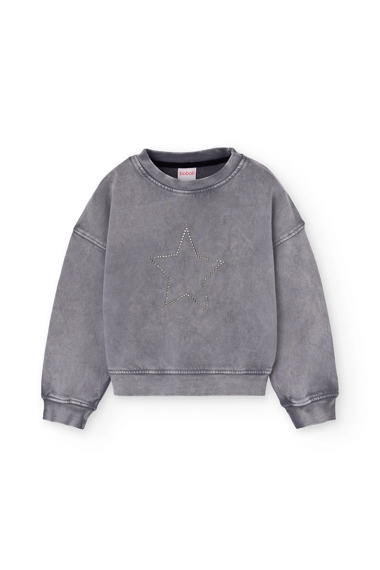Grey fleece sweatshirt for girls, perfect for keeping little ones warm and stylish during autumn and winter. Made with a lovely blend of cotton and polyester, it offers softness and warmth for everyday wear. Available in various sizes, it ensures a comfortable and suitable fit for different ages. Pair it with jeans, leggings, or skirts for varied and charming looks. Ideal for everyday wear, its versatile design makes it an essential item in any child's wardrobe.