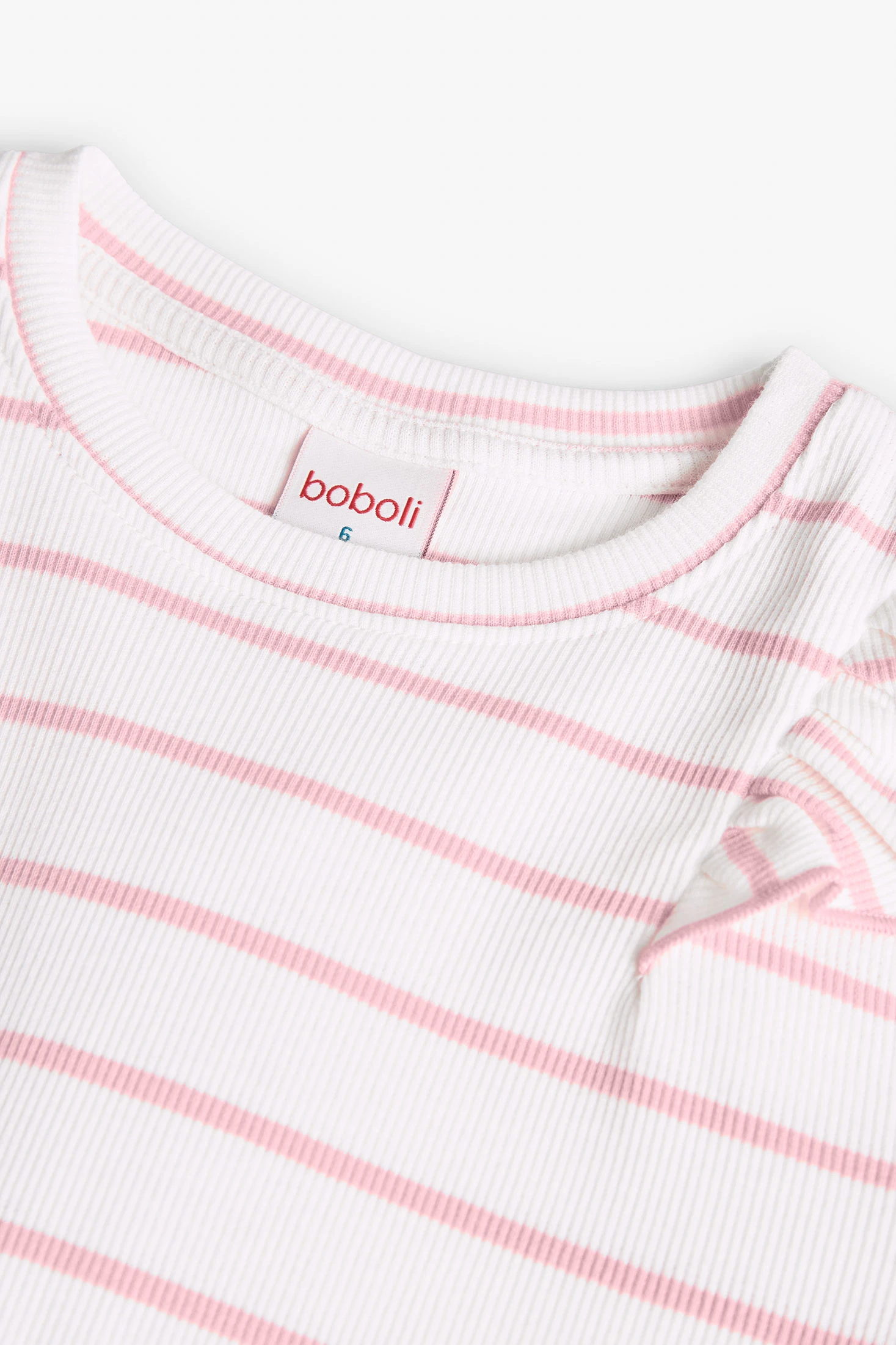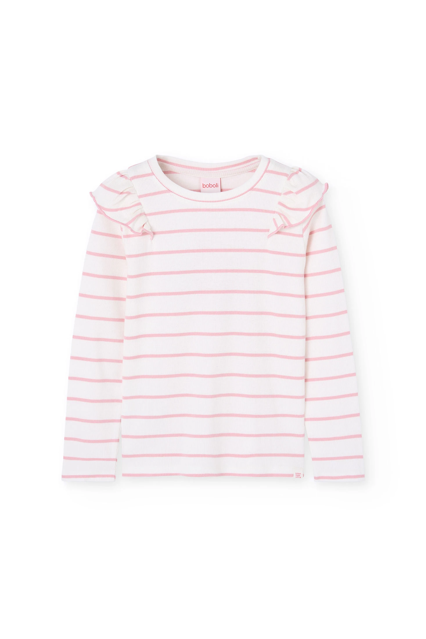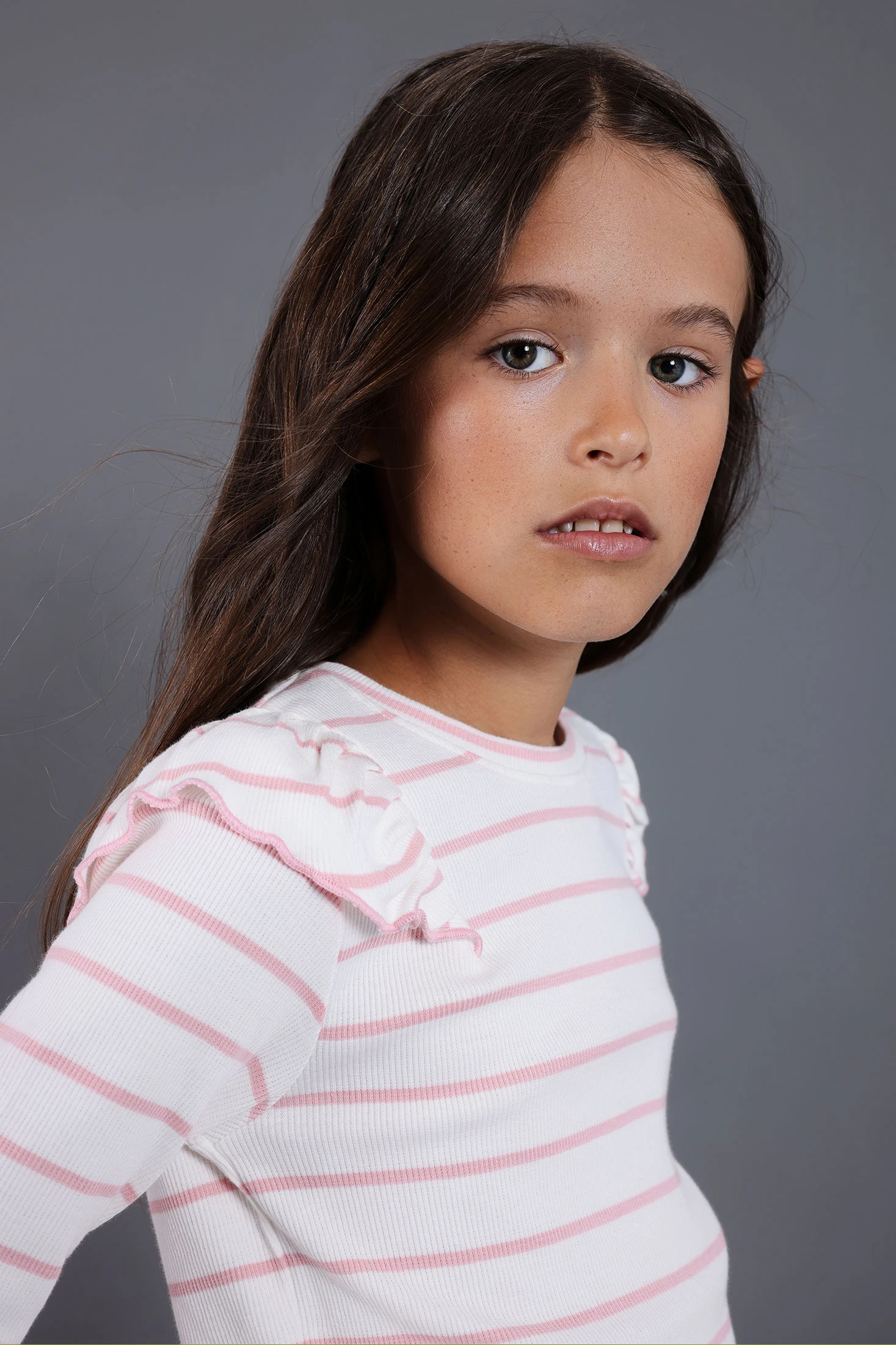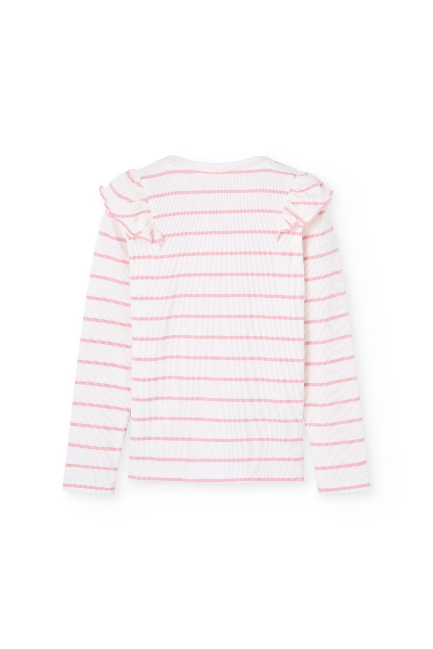 Knit t-shirt for girls, a basic essential in her wardrobe. Made from a soft and stretchy fabric, it offers comfort for daily wear. Available in a variety of sizes, it fits perfectly to the figure, ensuring freedom of movement. Ideal for any season, it can be paired with skirts or trousers for a casual and chic style. Perfect for both school and weekend activities.