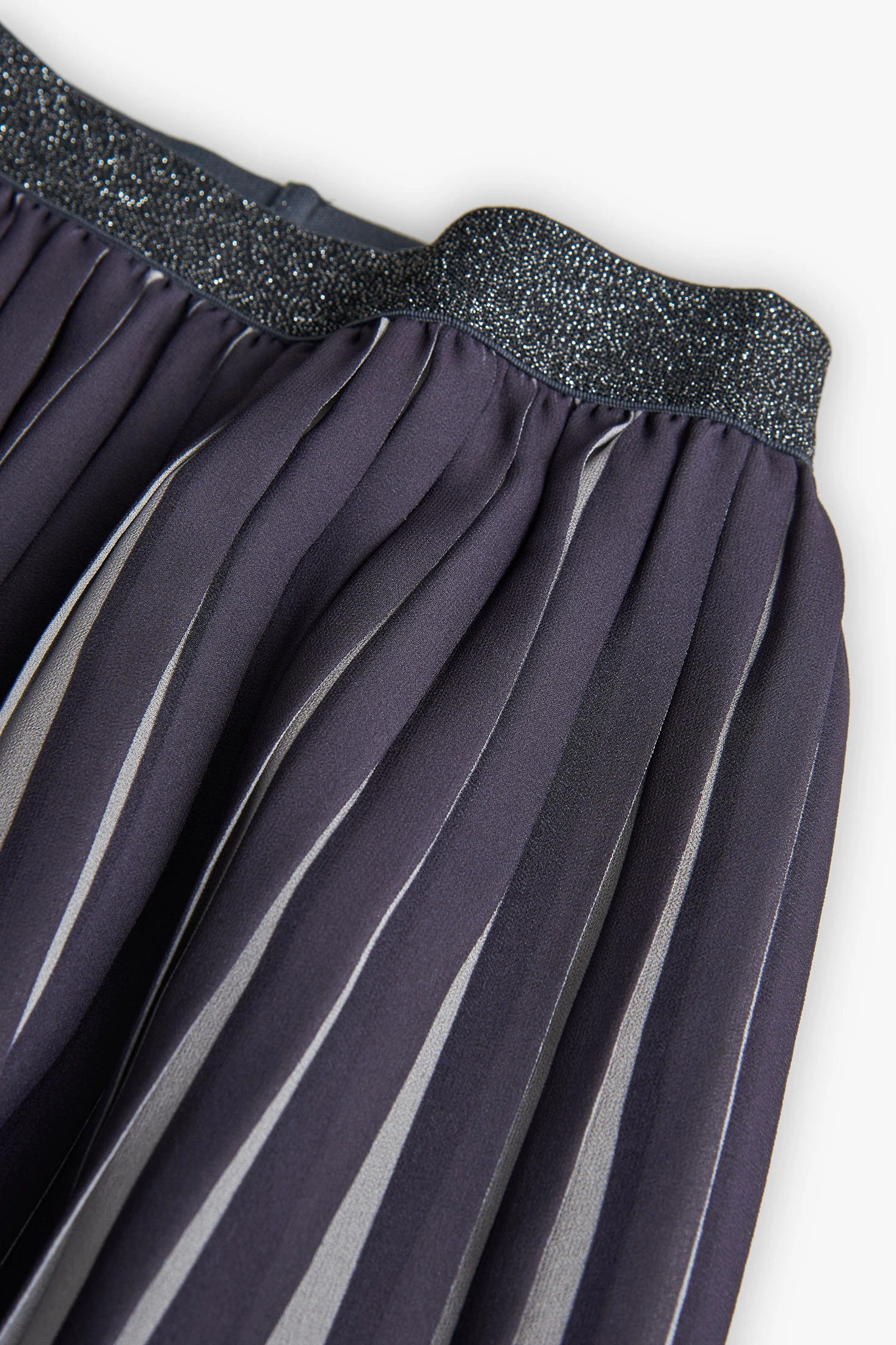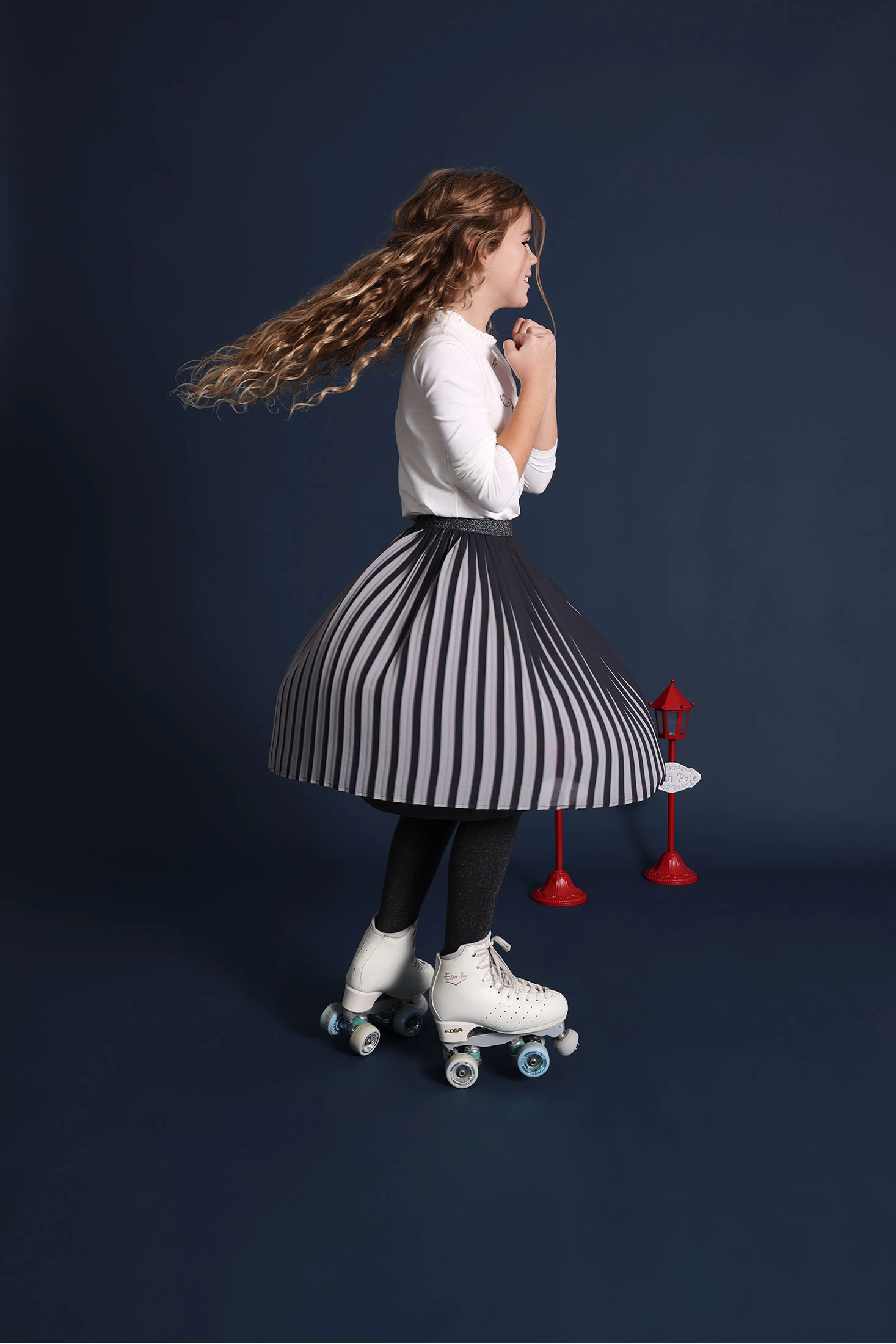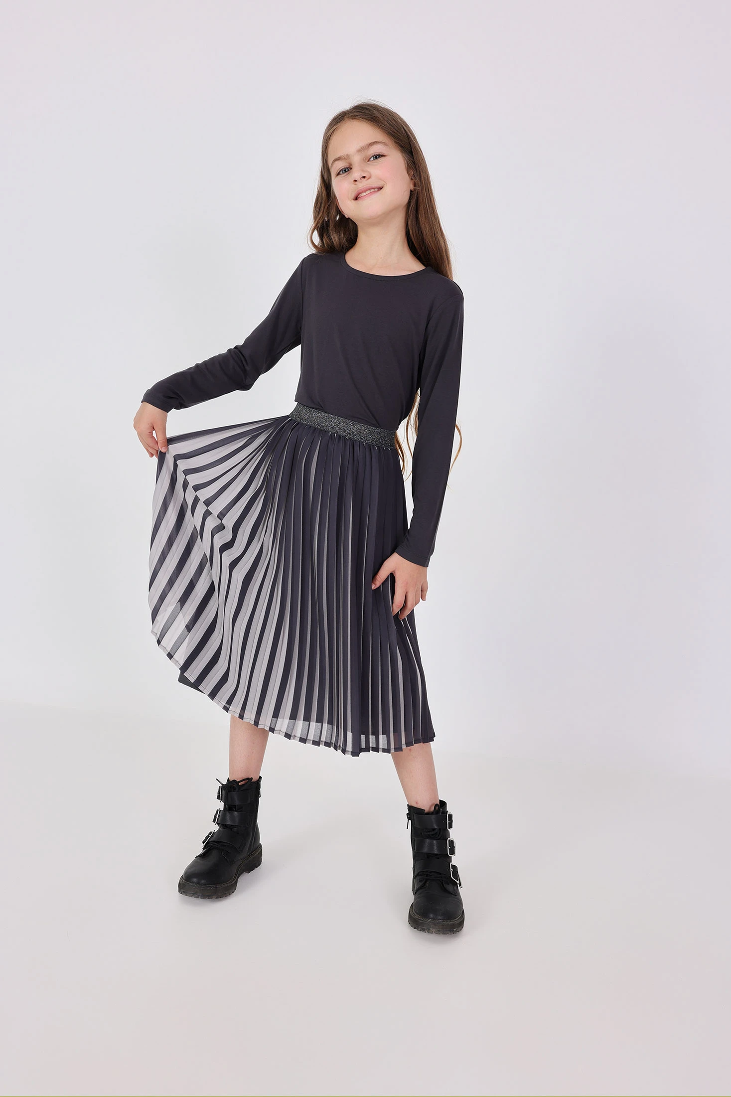Grey chiffon skirt for girls offers an elegant and versatile design, perfect for any occasion. Made from a lightweight and flowing material, it ensures comfort throughout the day. The neutral grey tone makes it easy to pair, ideal for matching with blouses or jumpers in light or pastel shades. Available in sizes from 2 to 14 years, it guarantees a perfect fit for different ages. A modern and chic choice that adds a touch of style to a child's wardrobe.