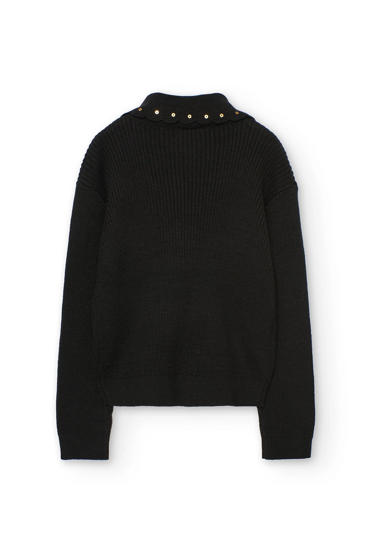 Knitted jumper for girls, perfect for the autumn and winter seasons, thanks to its soft and warm fabric that ensures complete comfort. In black, the jumper stands out for its elegant bow and delicate pearl details on the neckline, which give it a sophisticated style. Its long sleeves provide extra warmth for the colder days. Available in sizes 2 to 14 years, this versatile garment complements any outfit, adding a chic touch to any ensemble.