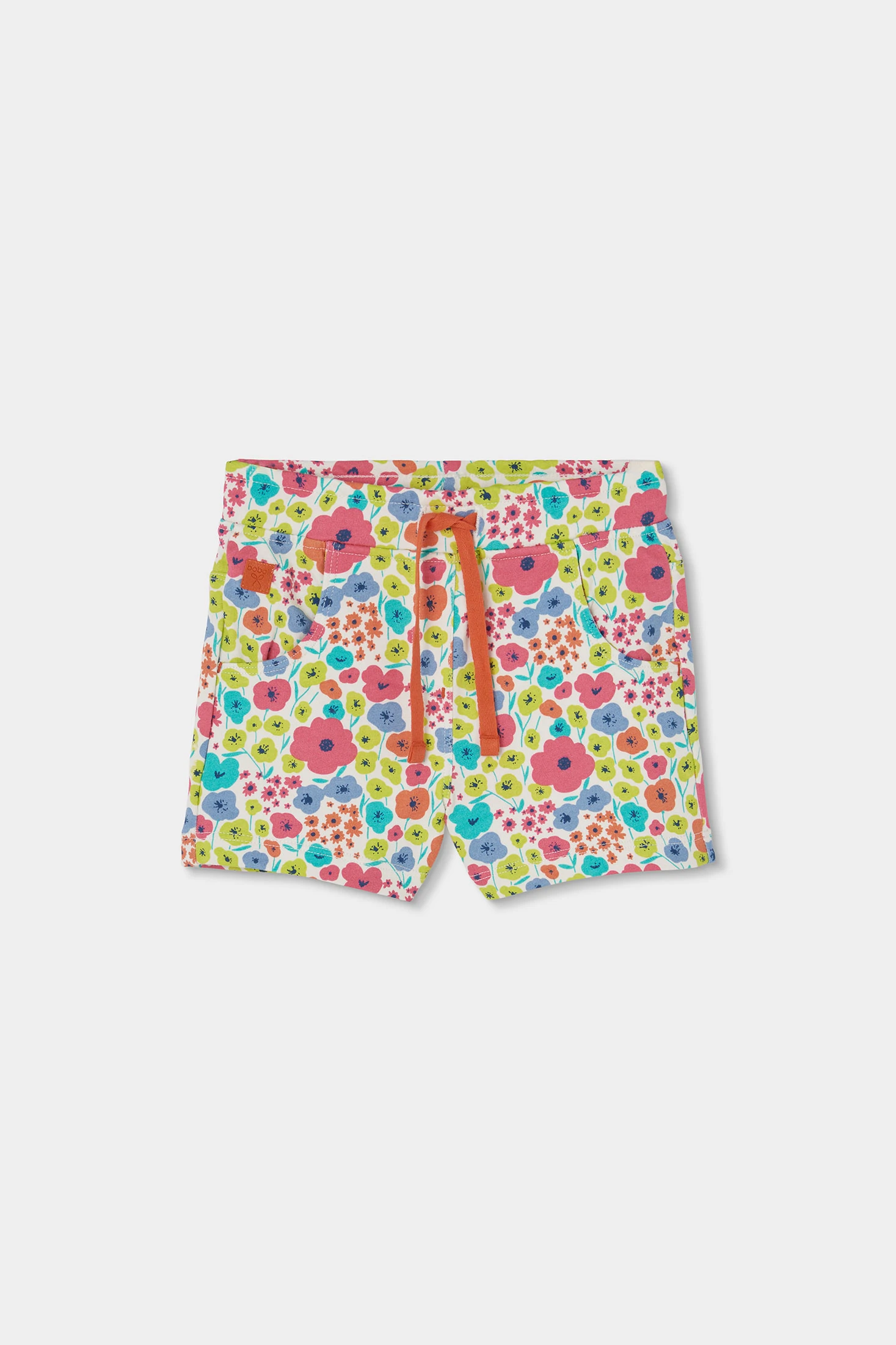 Terry shorts for girls with a multicolour floral print, perfect for casual occasions and warm days. Its soft fabric provides comfort and freshness. Designed for ages from 12 months to 10 years, the design includes a practical waist drawstring for adjustment, and its vibrant colours make it a cheerful and fun garment. An ideal option to pair with plain T-shirts, offering style and comfort for everyday wear.