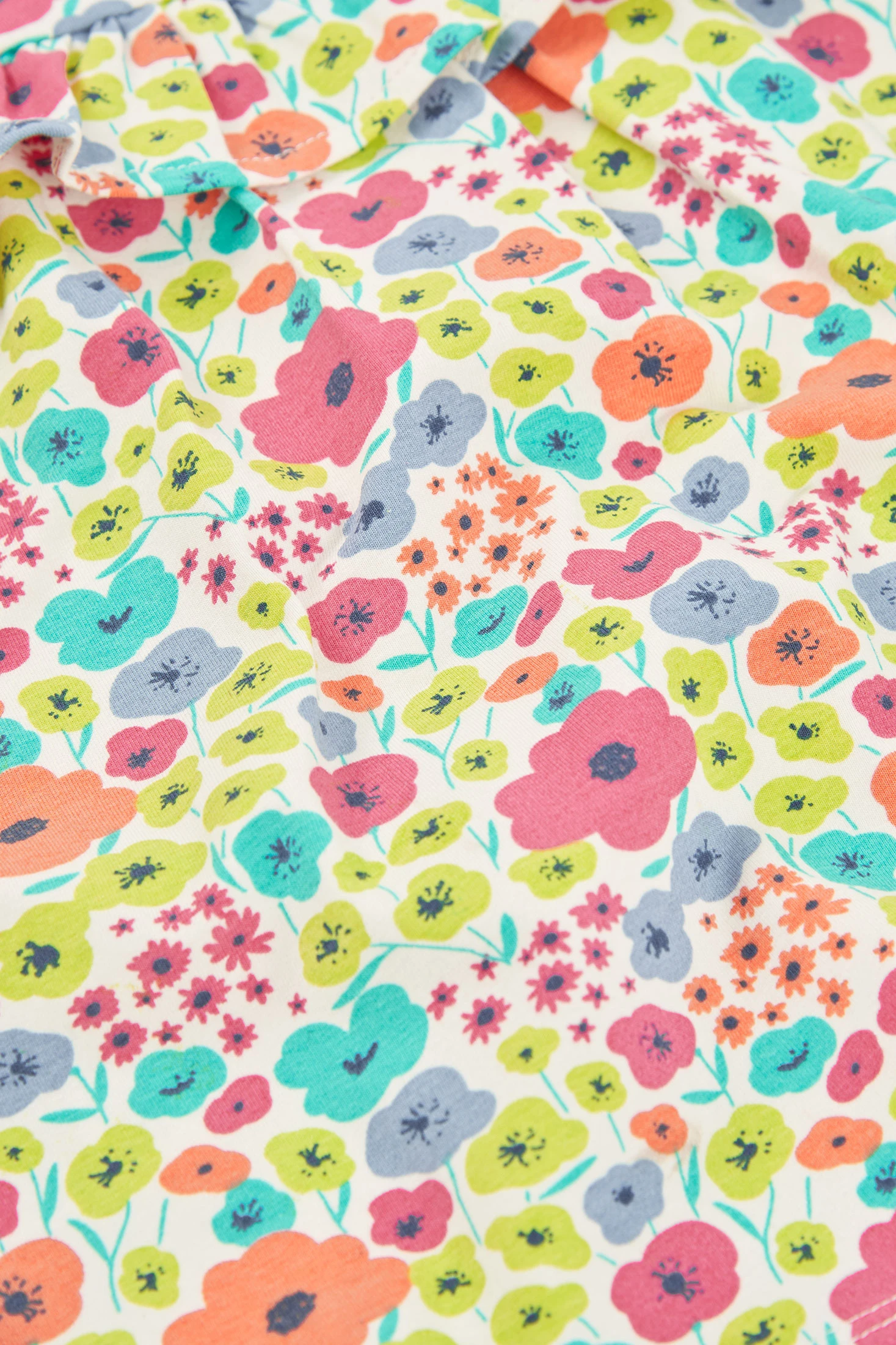 Knitted t-shirt for girls, perfect for the little ones, with a cheerful floral print in vibrant colours. The knit material offers comfort and flexibility, ideal for everyday wear. It features short sleeves and a collarless design, making it easy to put on for young children. Available in sizes from 12 months to 14 years, adapting to the growth of the child. Its colourful design makes it easy to pair with other garments, being a versatile and fun option for any occasion.