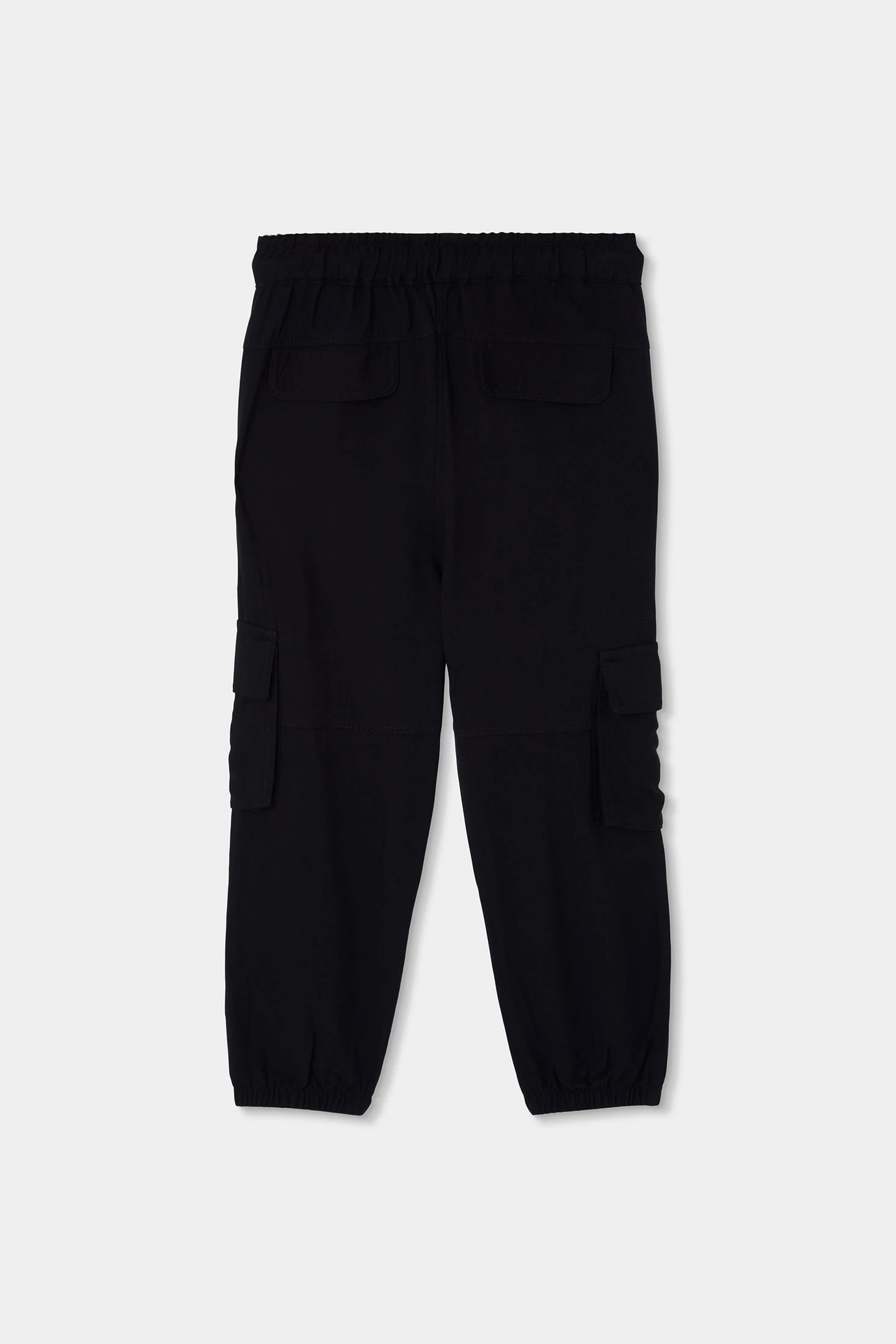 Black trousers for girls, ideal for a casual and comfortable look. Made from soft fabric, they offer comfort and warmth, perfect for everyday wear. The design features practical cargo-style pockets, adding functionality and style. The elasticated waistband with drawstring ensures a secure fit. Available in sizes for girls from 2 years to 14 years. A versatile basic that can be easily paired with different garments to create modern and practical outfits in any season.