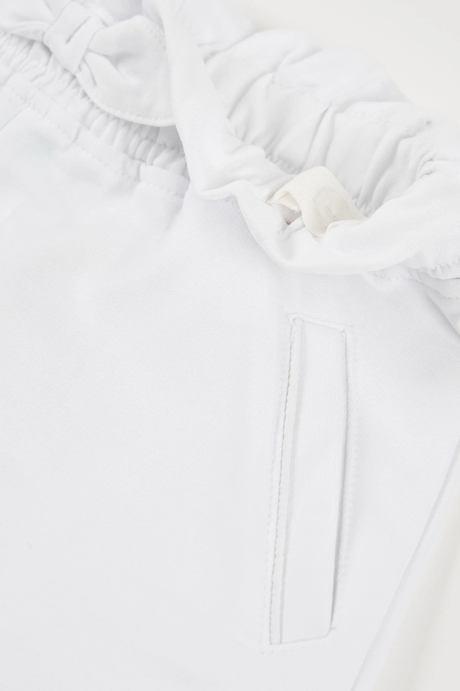 White fleece shorts ideal for girls, providing comfort and freshness. Made from a soft material, they ensure freedom of movement, perfect for summer. The design includes an elastic waistband with a decorative bow at the front. Available in sizes from 2 years to 14 years, they are versatile to pair with colourful, plain, or patterned T-shirts. Their white colour makes them easily combinable, turning them into an essential piece for children's wardrobes during warm days.