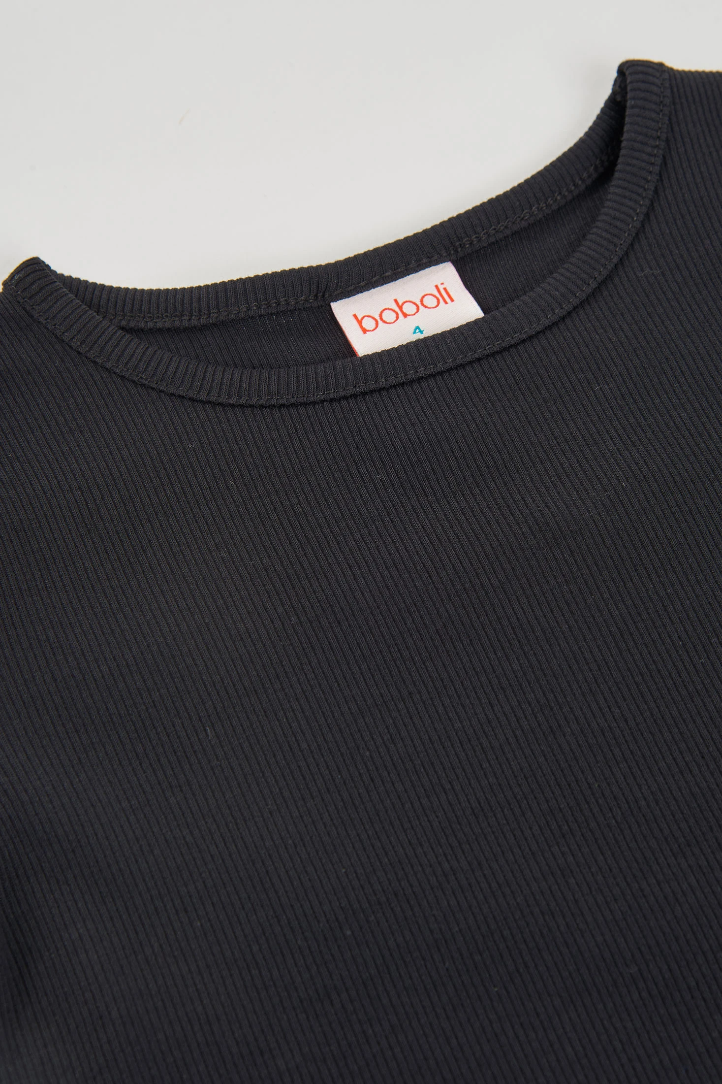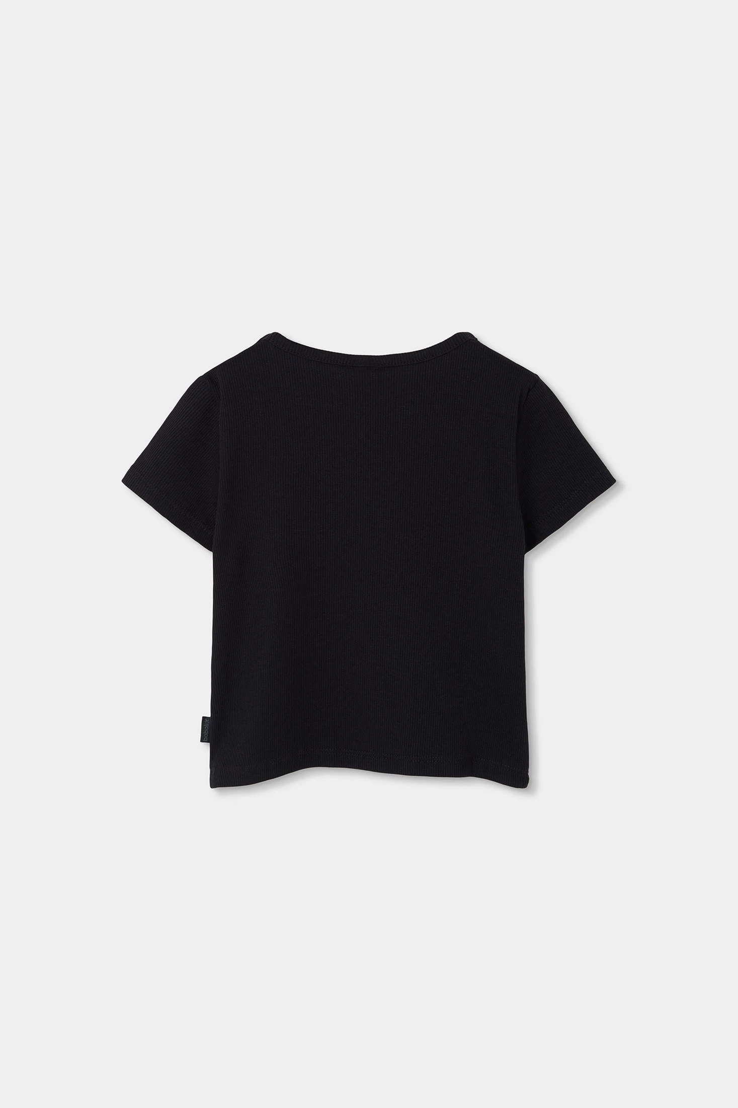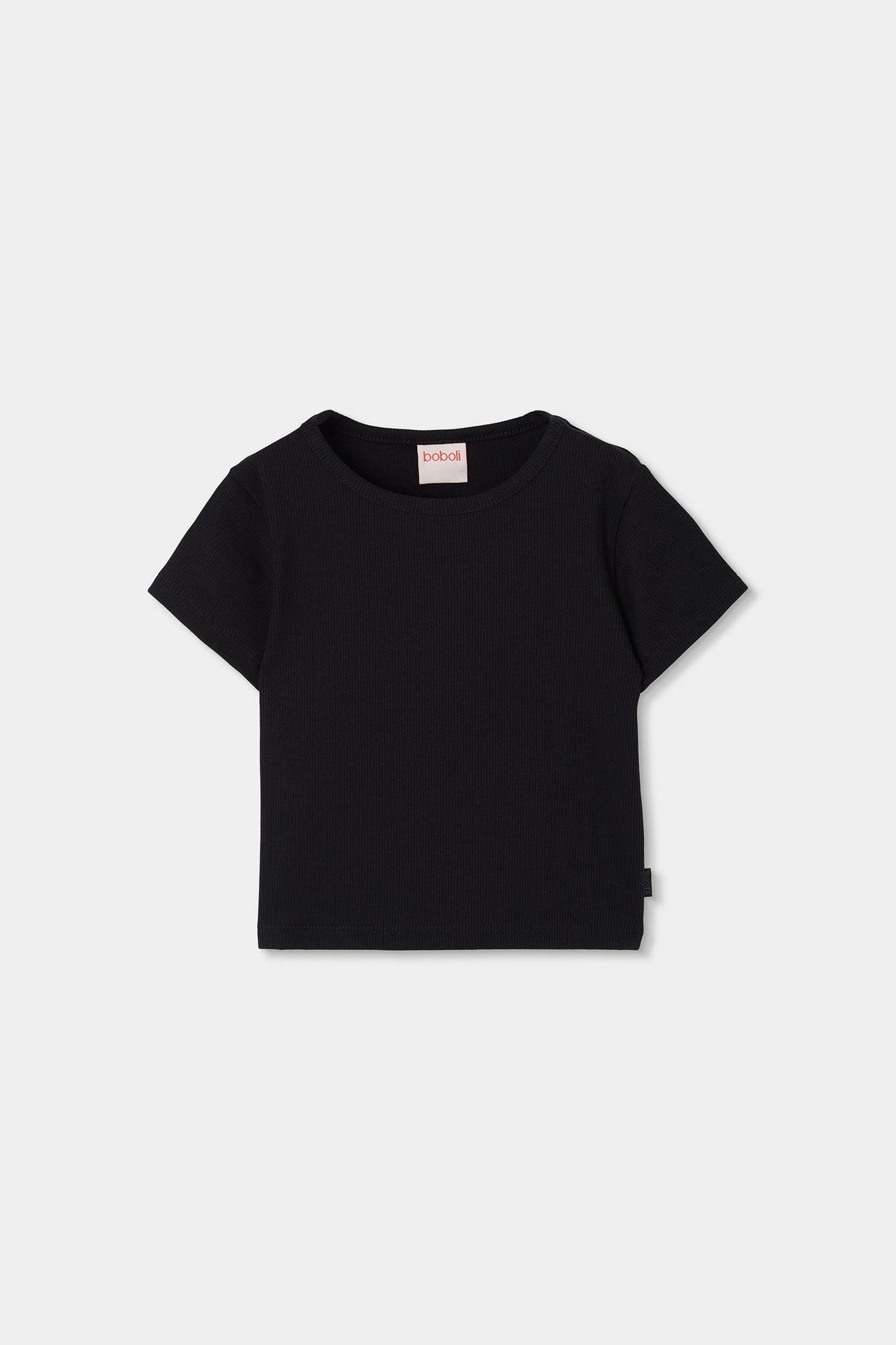 Ribbed knit t-shirt for girls, ideal for any season. Made from black cotton, it offers comfort and softness. Its simple and classic design includes a round neck and short sleeves, perfect for pairing with skirts or trousers. Available in sizes from 12 months to 14 years, accommodating the girl?s growth. The ribbed knit lines add a textured touch that enhances its style. A basic and versatile garment for any children?s wardrobe.