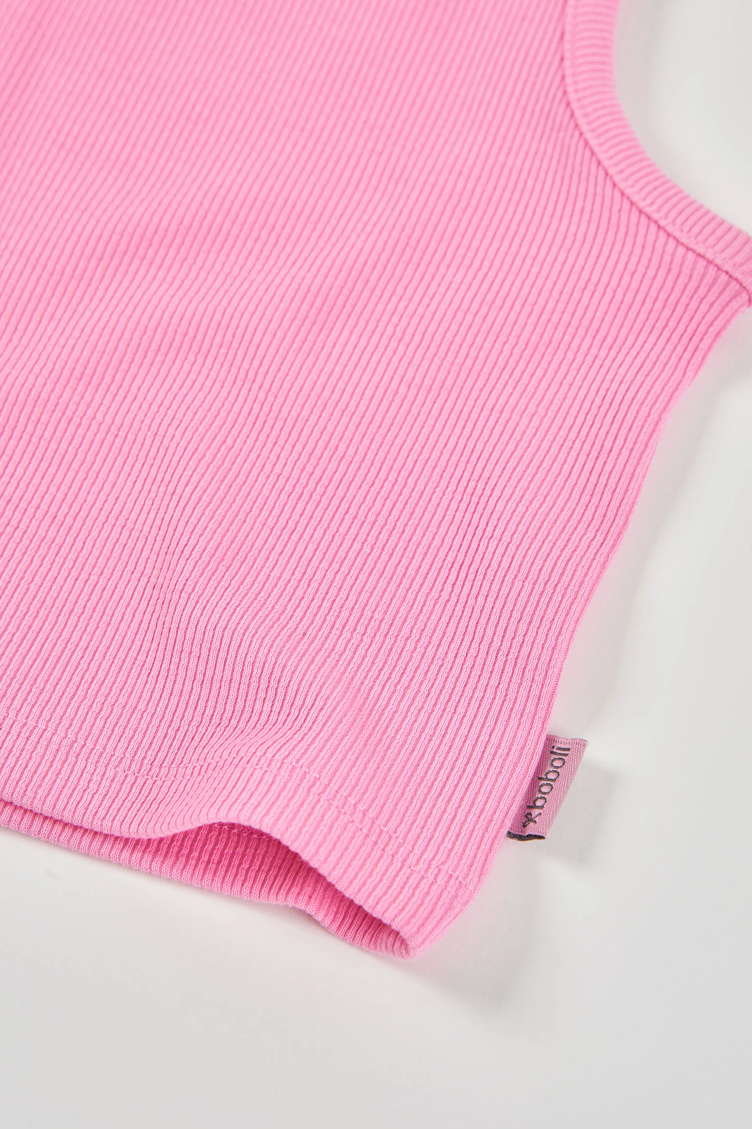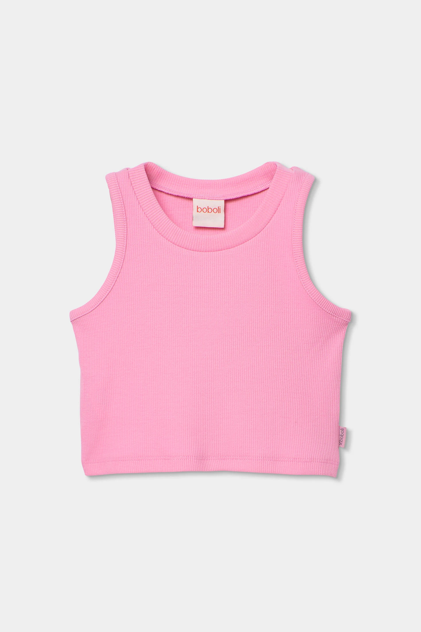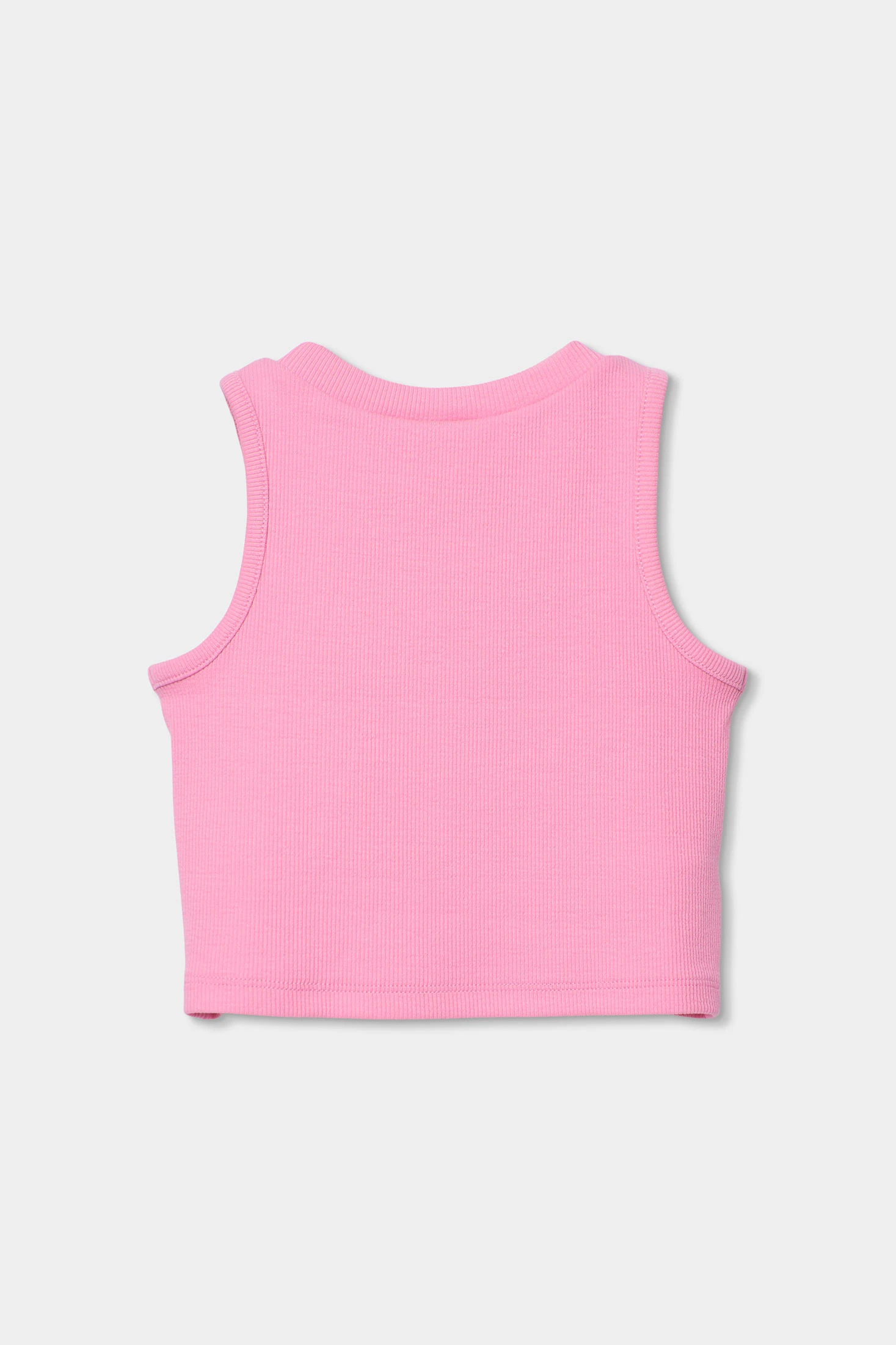 Rib-knit T-shirt for girls offers versatility and comfort. Made from soft cotton, it is perfect for delicate skin. Its bright pink colour adds a cheerful touch to any outfit, and the sleeveless design makes it ideal for pairing with jackets or over long-sleeved shirts. Available in sizes from 12 months to 14 years, it is a practical choice for any season. This essential piece easily complements both casual and more formal styles, providing both comfort and style.