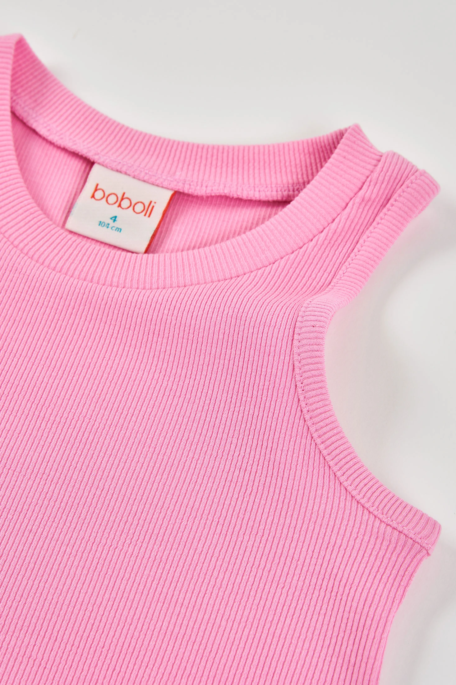 Rib-knit T-shirt for girls offers versatility and comfort. Made from soft cotton, it is perfect for delicate skin. Its bright pink colour adds a cheerful touch to any outfit, and the sleeveless design makes it ideal for pairing with jackets or over long-sleeved shirts. Available in sizes from 12 months to 14 years, it is a practical choice for any season. This essential piece easily complements both casual and more formal styles, providing both comfort and style.